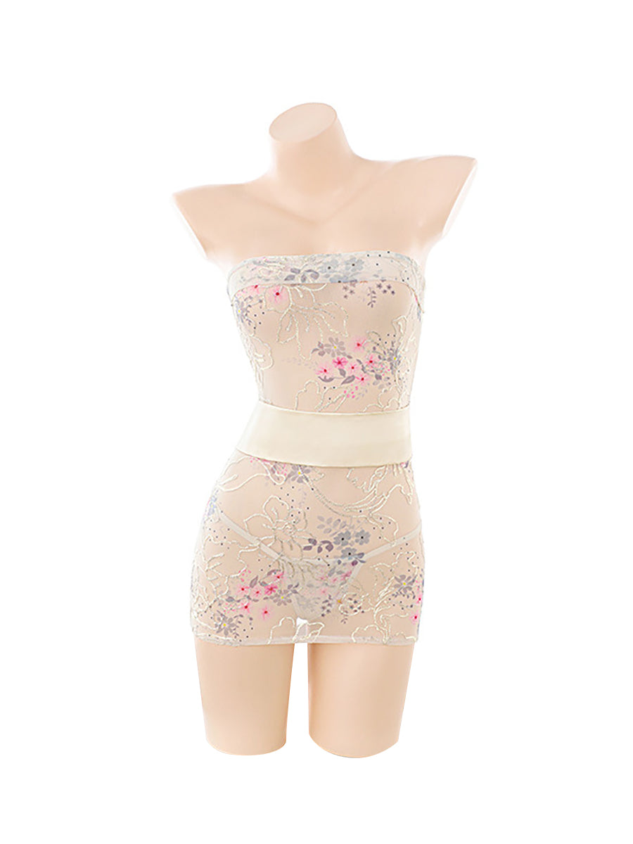 Design: Sexy strapless lingerie dress offers a perfect blend of beauty and comfort. crafted from breathable sheer floral embroidery fabric, japanese kimono belt (obi) for a snatched waist, it is designed to provide a flattering fit that is comfortable to wear.