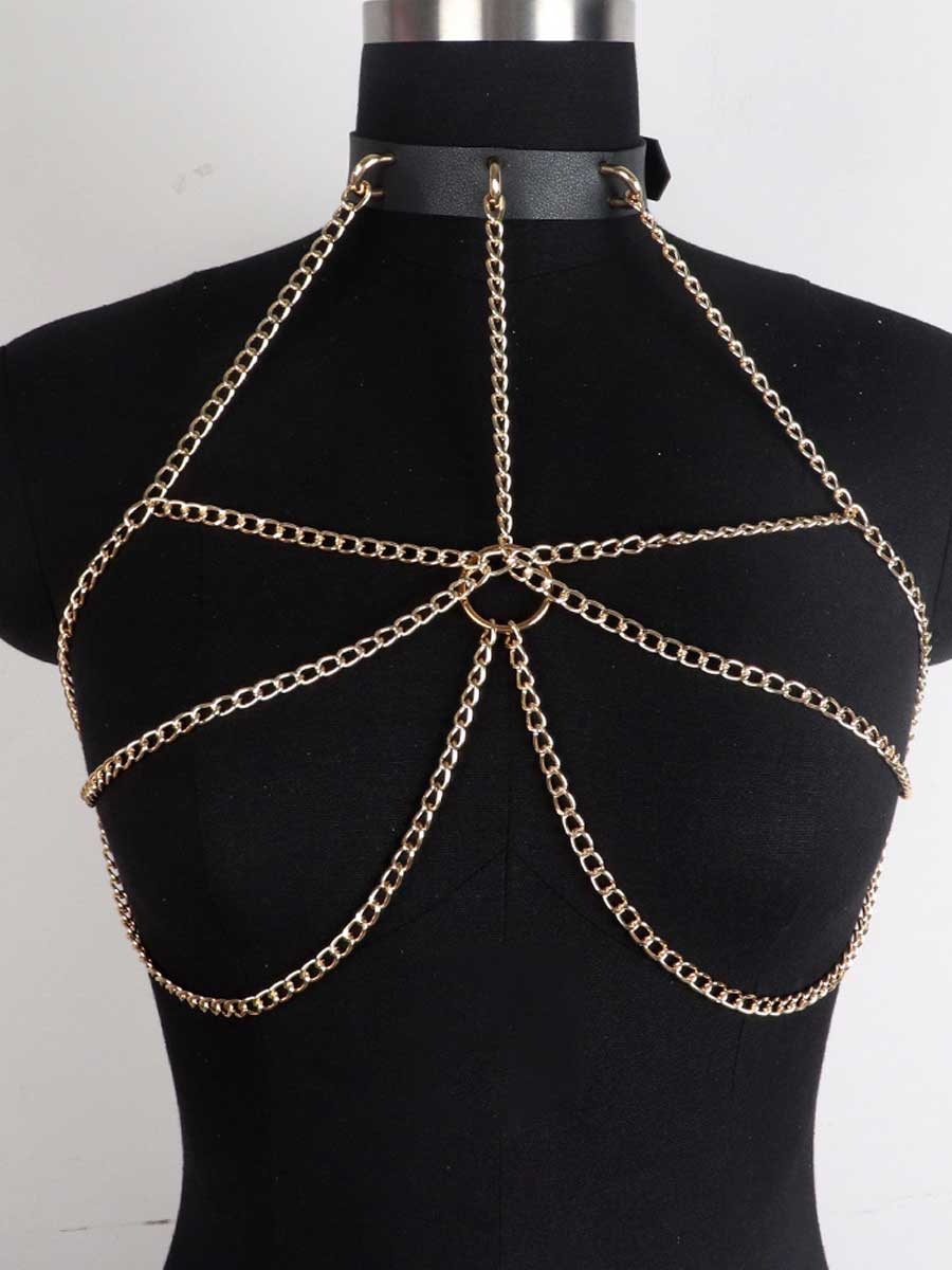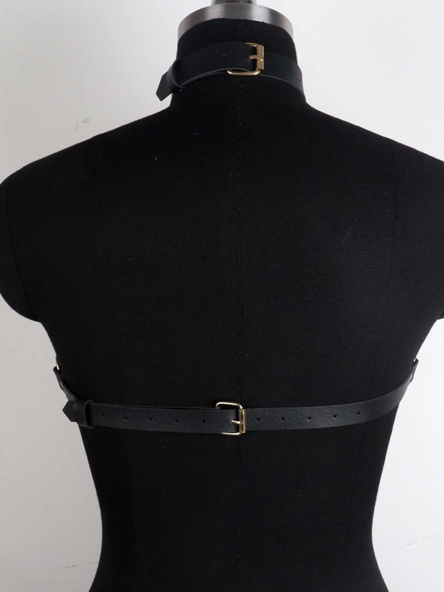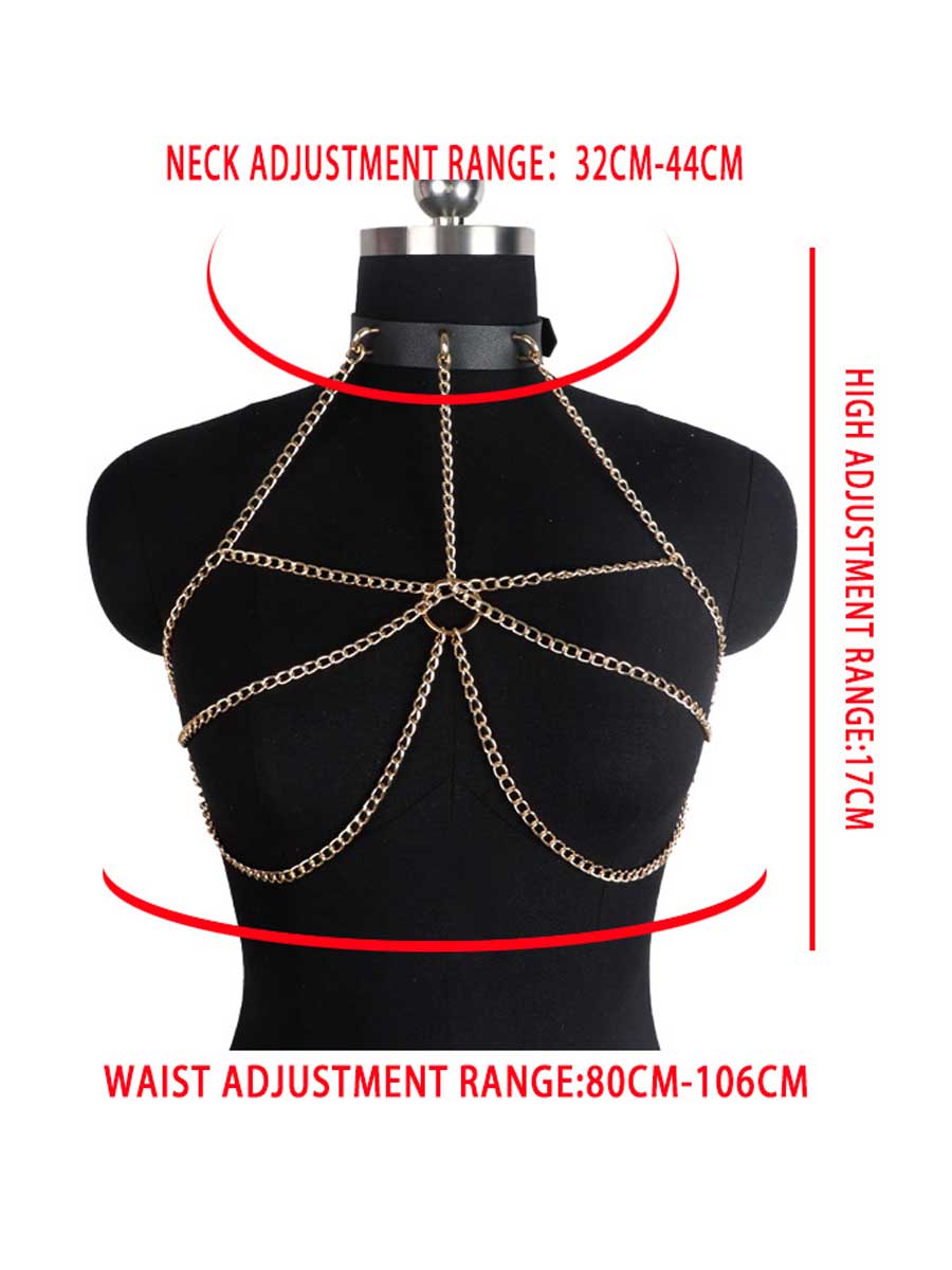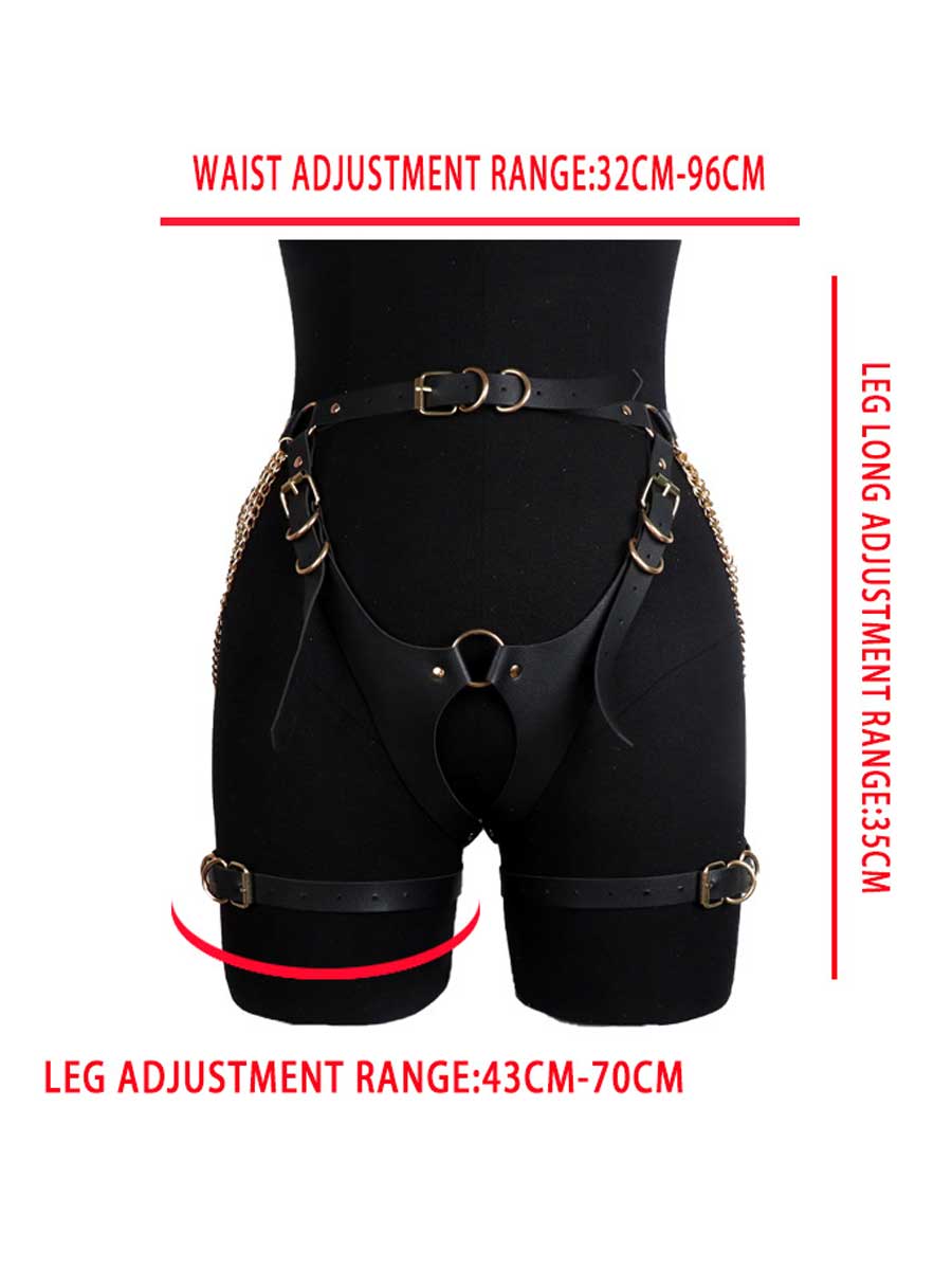 Design: Sexy leather harness lingerie looks and feels like the real deal. It's the perfect accessory for a sleek and sexy look, featuring golden chains, O-ring accents, attached leg garters, and an adjustable back belt closure for a perfect fit every time.