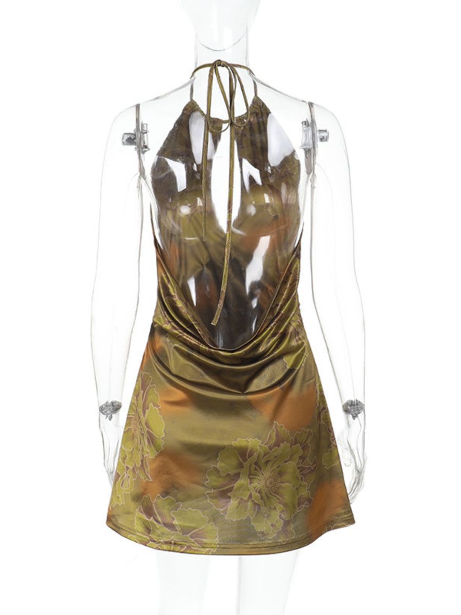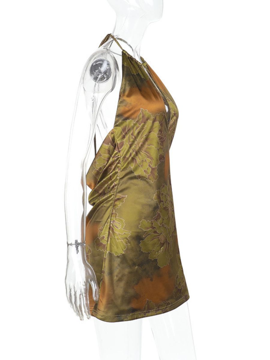 Floral Print Backless Party Dress