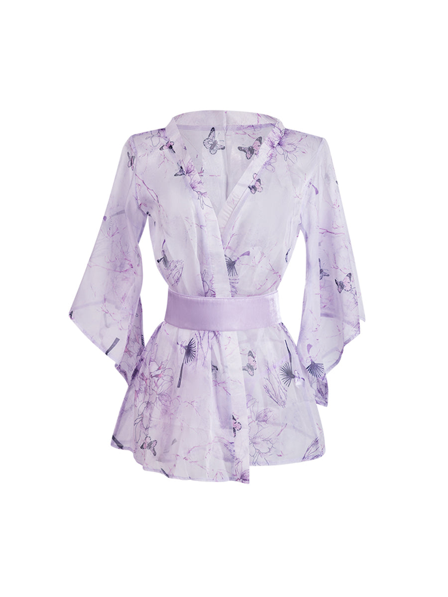 Japanese Sexy Chiffon Robe with long wide sleeves, an allover floral print on this women's kimono pajamas adds interest to your life and makes you look unique and sexier.