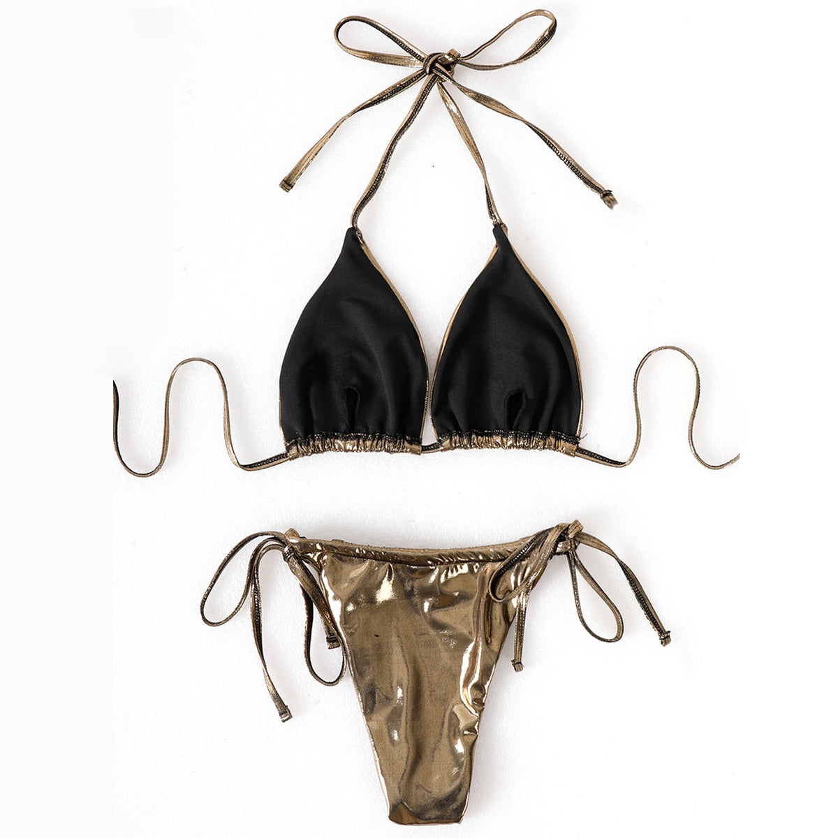 - String halter bikini top - tie closure on the back, sexy triangle bikini swimsuits, shiny padded cups