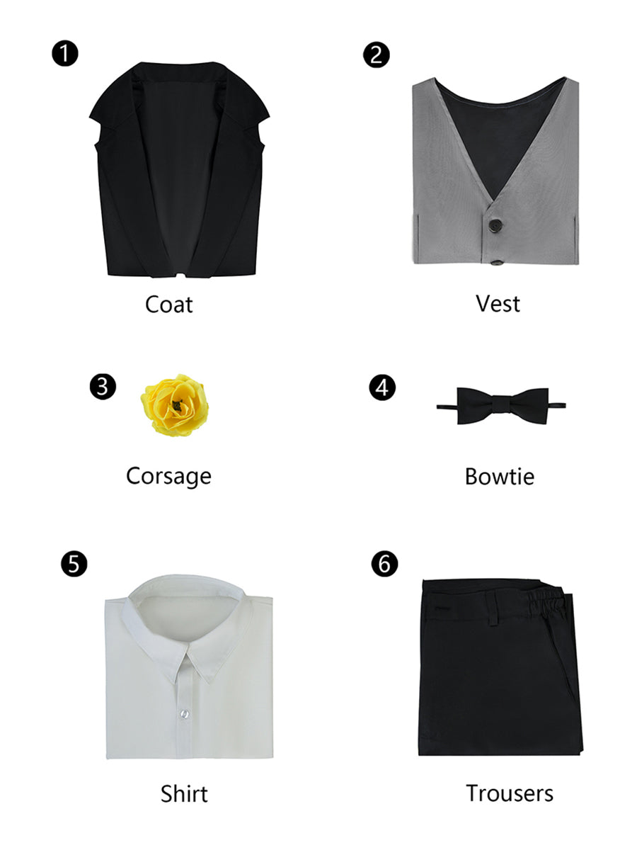 Package Including: Costume: 1* Coat+1* Vest+1* Shirt+1*Trousers+Accessories