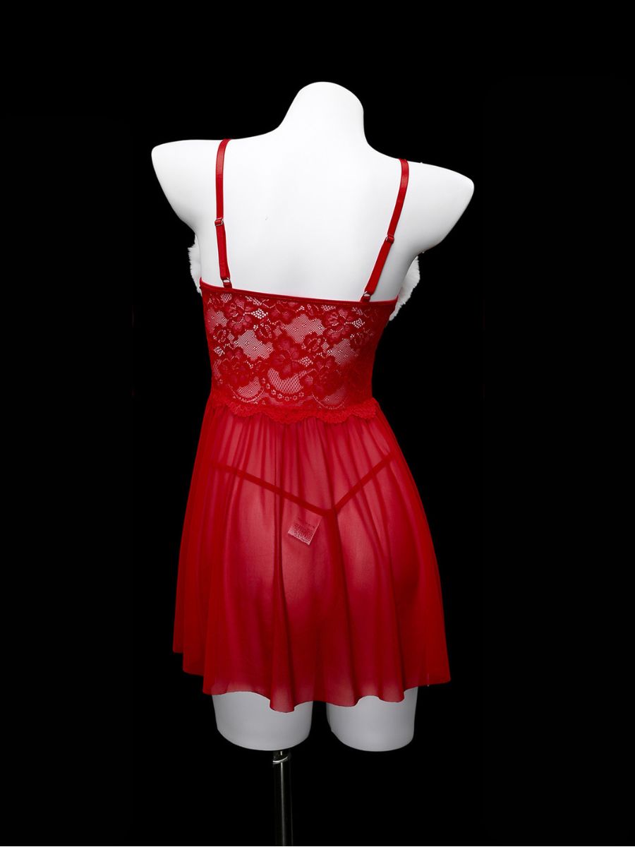 Design: This Sexy Christmas lingerie set features white faux fur trim along the neckline and a large red velvet bow at the bust for a playful, festive touch. Adjustable spaghetti straps ensure a comfortable fit, while the flowing, lightweight mesh skirt adds a flirty elegance.
