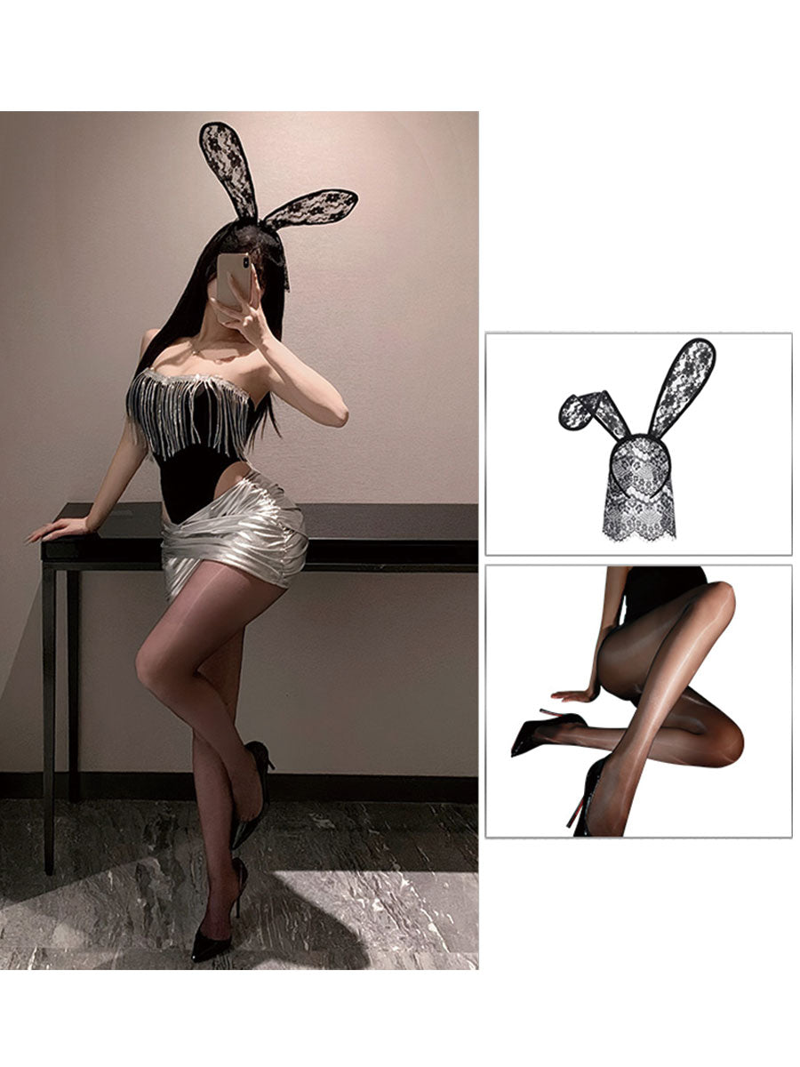Design: This Sexy Bunny Lingerie featuring a black strapless bodysuit, sequin fringe contrast trim, snap crotch, and a matching metallic silver mini skirt, a curve-hugging wrapped hem with a mini length, this costume creates an edgy yet playful look that will get all the attention.