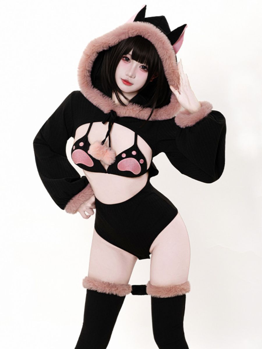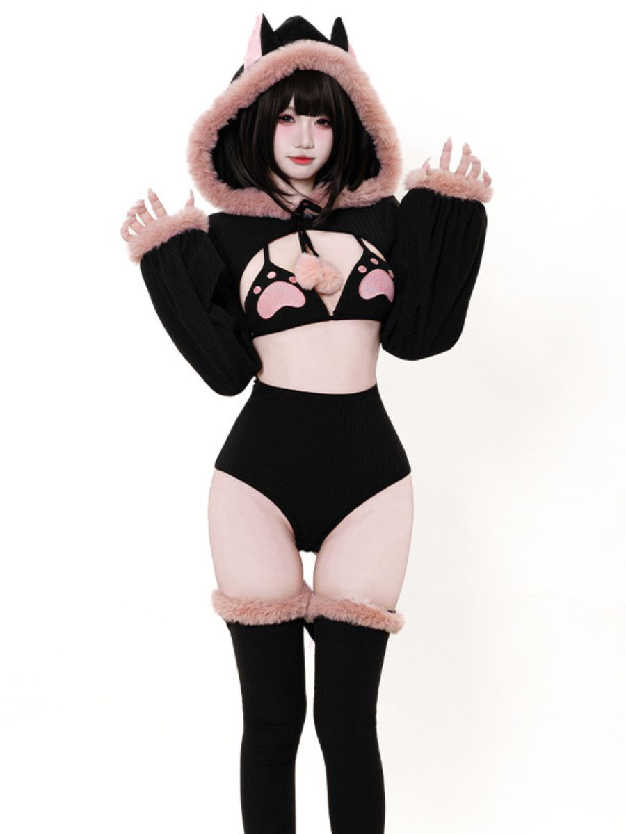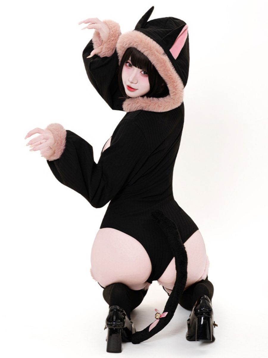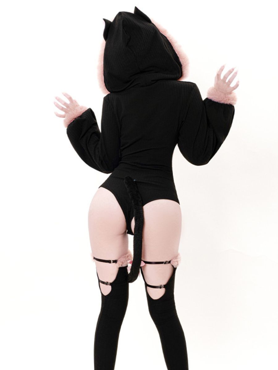 Design: Black hooded with cat ear and tail Bodysuit add the cosplay set’s cute. Velcro crotch teddy lingerie design makes your body partly hidden and partly visible, add a kind of mysterious and charming feeling. It's easier to get your lover's attention.