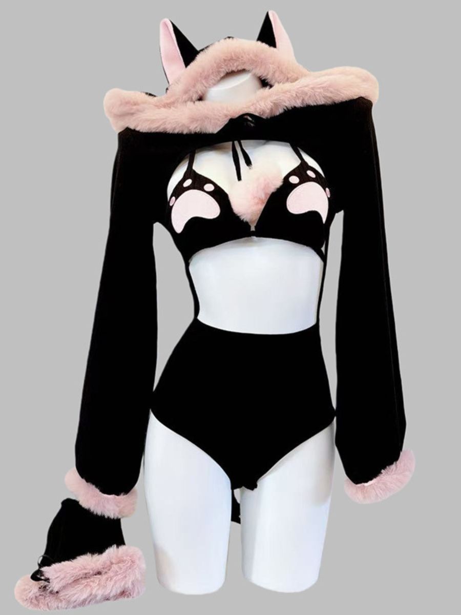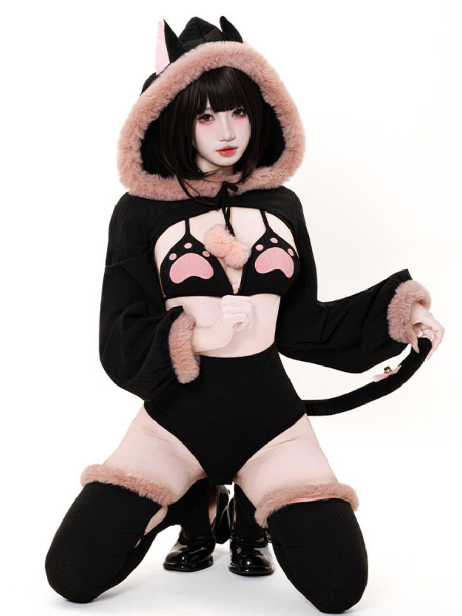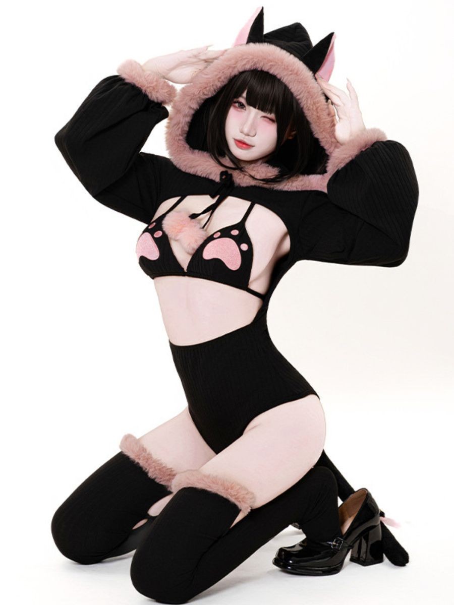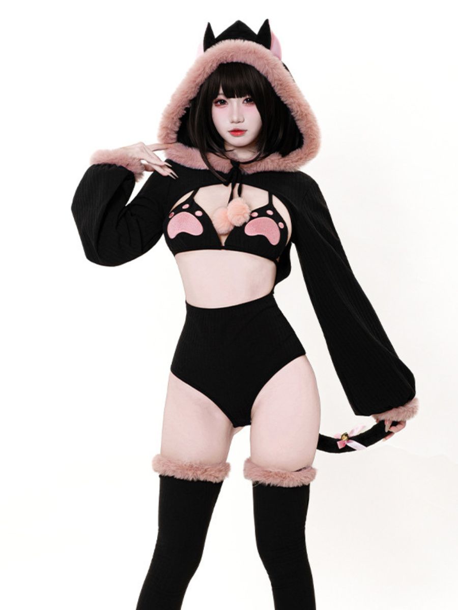Design: Black hooded with cat ear and tail Bodysuit add the cosplay set’s cute. Velcro crotch teddy lingerie design makes your body partly hidden and partly visible, add a kind of mysterious and charming feeling. It's easier to get your lover's attention.