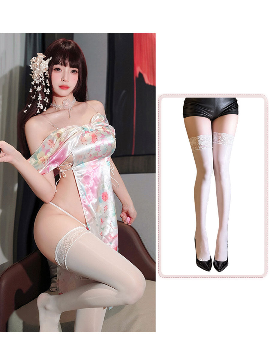 Package Including: 1* Kimono Dress+2* Clear Straps+1* Panty+1 pair of Stocking ( Headpiece, Choker and Hand fan not included.)