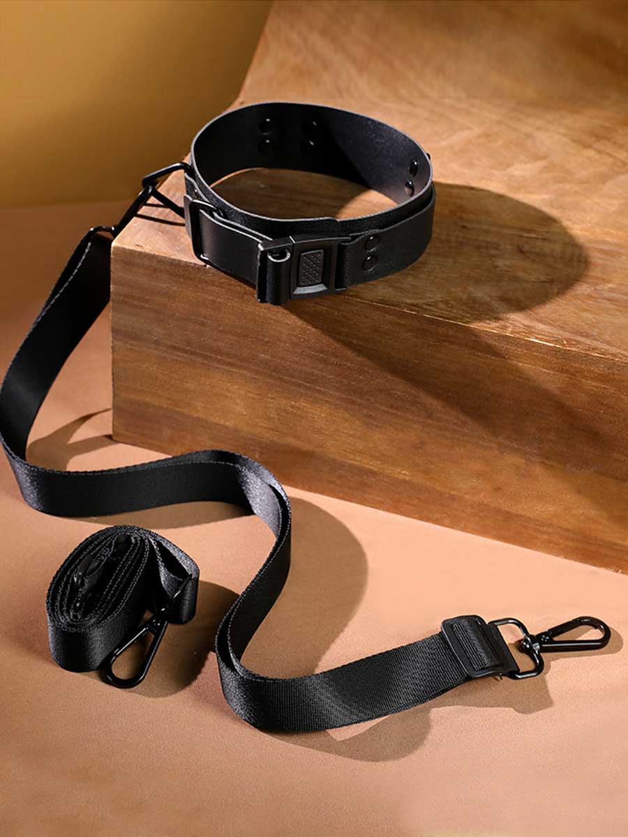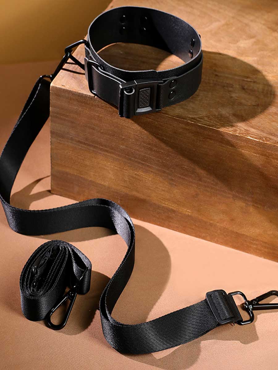 Design: Sexy leather harness set looks and feels like the real deal. It's the perfect accessory for a sleek and sexy look, featuring metal O-ring accents, adjustable connecting straps, detachable clip wrist cuffs, and an adjustable belt closure for a perfect fit every time.