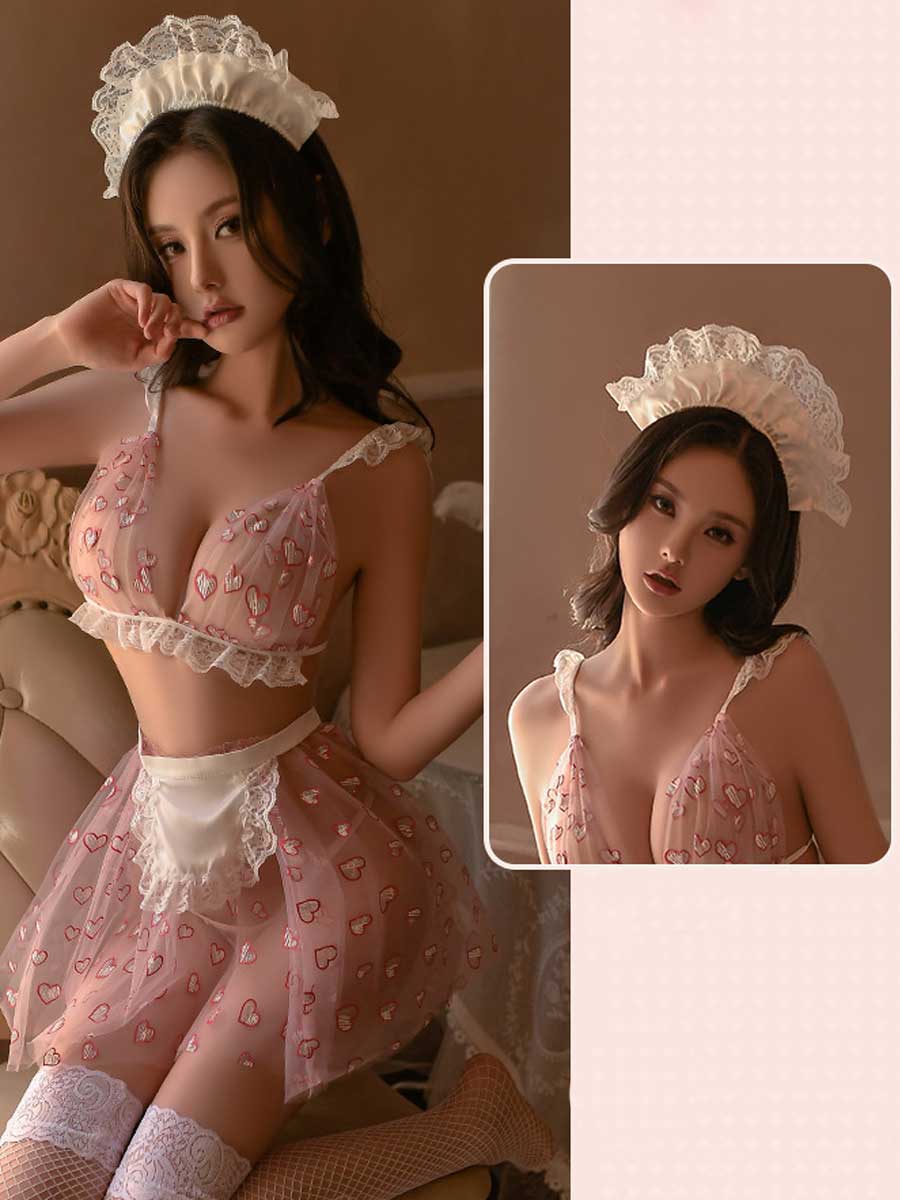 Pink Heart Maid Lingerie Set