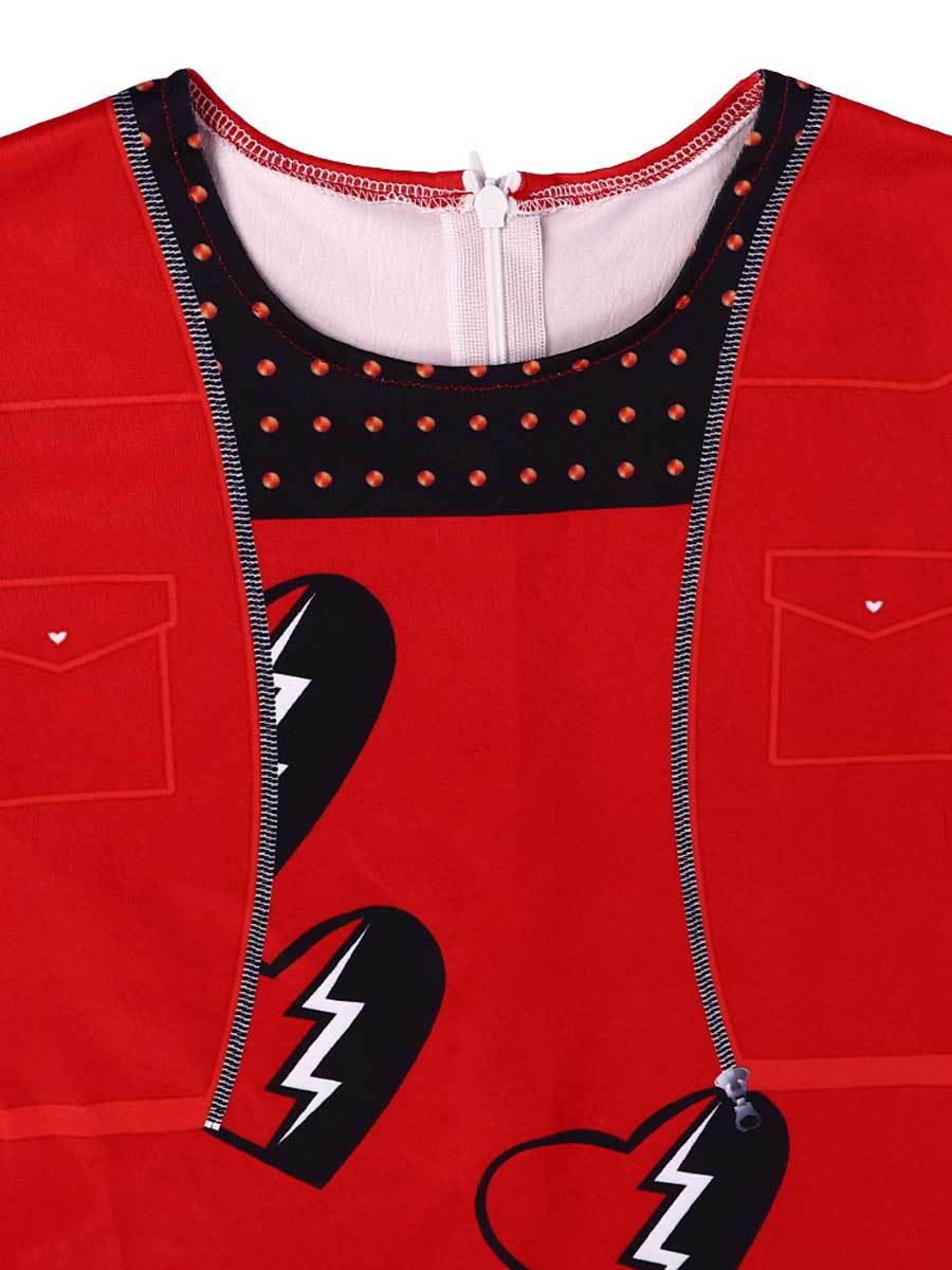 Design: American musical comedy film costume featuring a pink dress, or full body jumpsuit, long sleeves, fitted legs, back zipper up closure, an allover 3D printed design, restores the princess character.