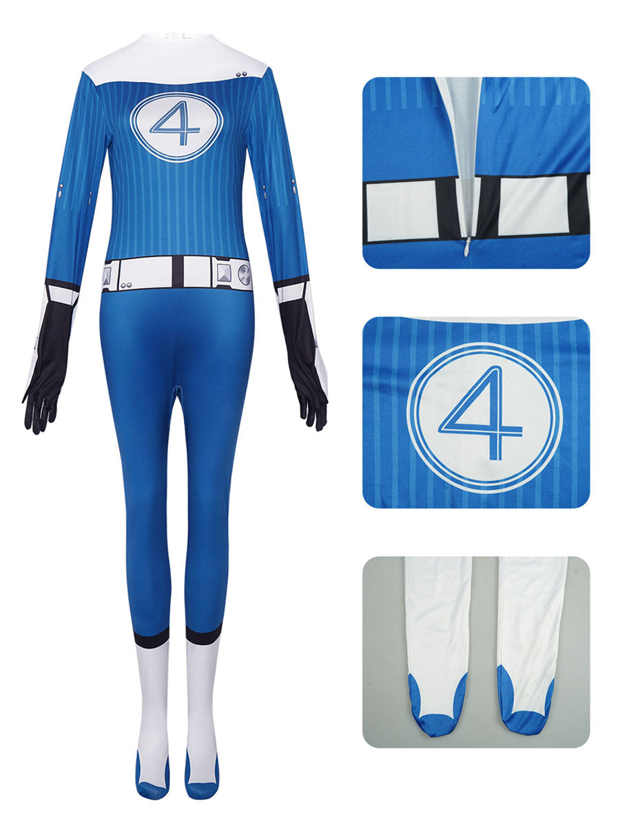 Design: Heroine Role-playing Cosplay Costume featuring a full body jumpsuit with a high neckline, long sleeves, back zipper up closure, fitted legs, an allover 3D printed design, restores the roles character.
