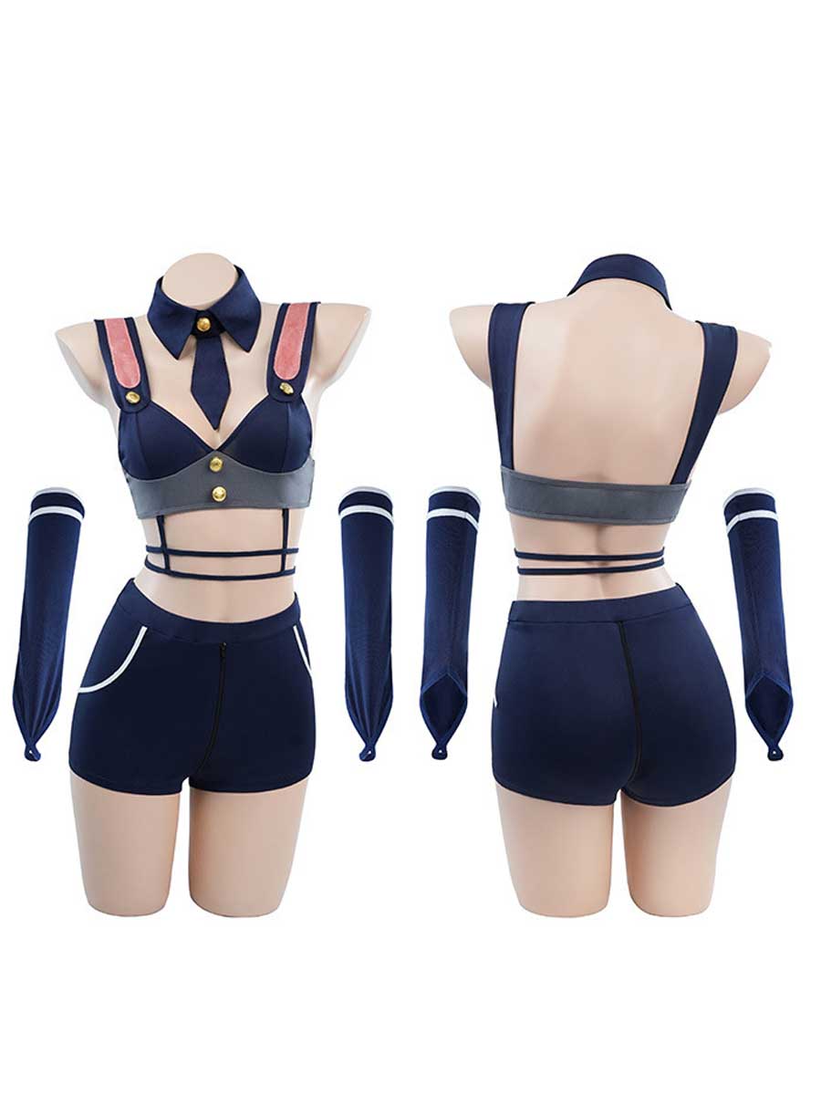 Design: This Sexy Bunny Cosplay Costume featuring a bra top with underbust strappy detailing, wide shoulder straps, a bunny ear headband, and a matching shorts, crotch zipper up closure, this costume creates an edgy yet playful look that will get all the attention.