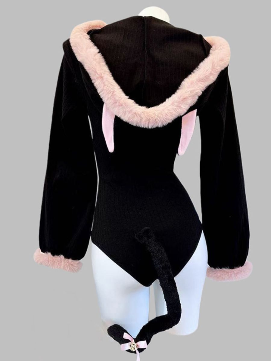 Design: Black hooded with cat ear and tail Bodysuit add the cosplay set’s cute. Velcro crotch teddy lingerie design makes your body partly hidden and partly visible, add a kind of mysterious and charming feeling. It's easier to get your lover's attention.