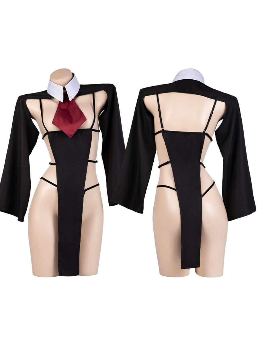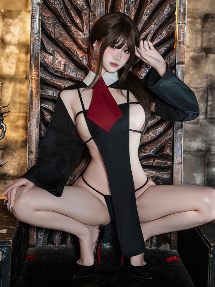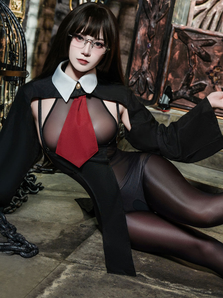 Design: Command the courtroom—and the bedroom—with our Sexy Lawyer Lingerie Costume. This bold and seductive sexy costume redefines authority with a daring twist. Featuring a sheer black bodystocking that contours your curves, complemented by a structured mini cape, sharp white collar, and a striking red tie, this sexy outfit exudes both confidence and allure. The open-shoulder design and strategic cutouts add a provocative edge, making it perfect for roleplay or an unforgettable night of seduction.
