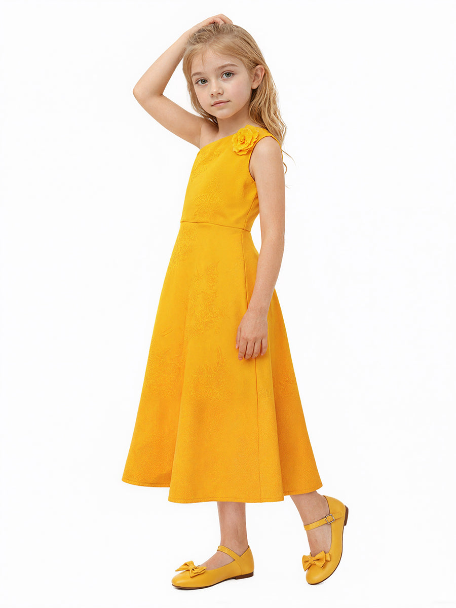 Yellow Bunny-Inspired One Shoulder Dress with Headwear