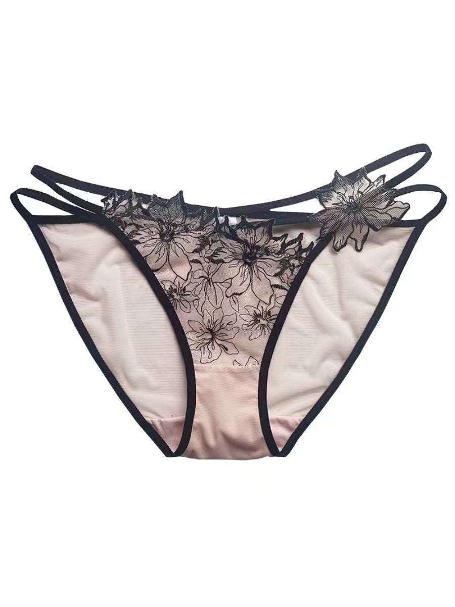 Design: This sheer lace panty featuring high waistband, double thin straps, a sheer lace and mesh crotch, floral embroidery, and a cheeky cut back.