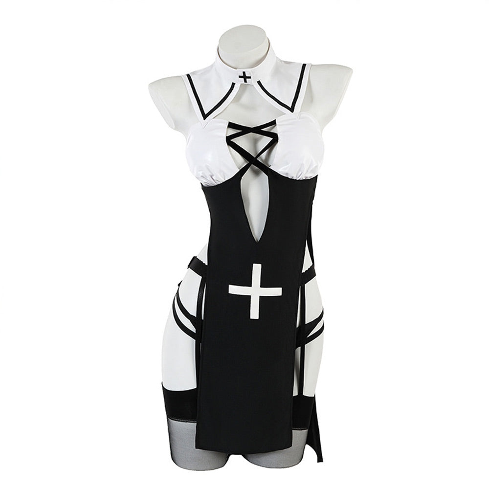 Sexy Nun Costume Nun Habit Cosplay Outfit High Slit Lingerie Dress with Habit Nun Veil