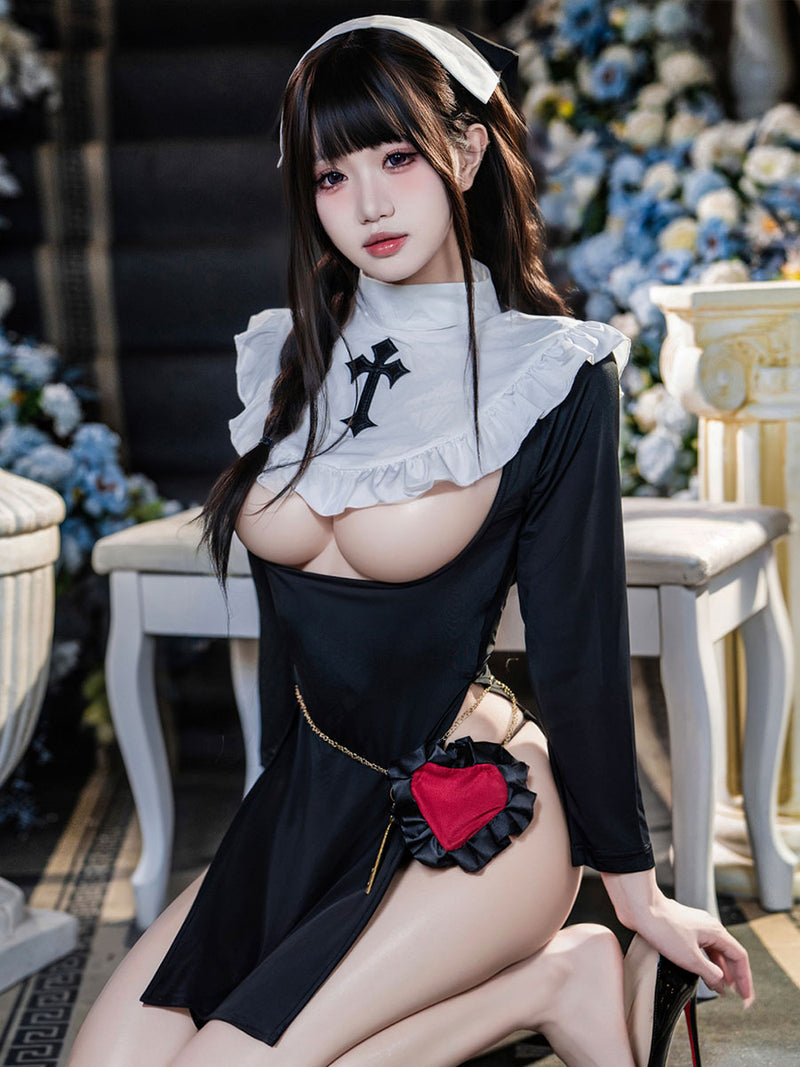 Nun Cosplay Uniform Set Sexy Hollow Side Split Lingerie Dress Naughty Anime Roleplay Outfit