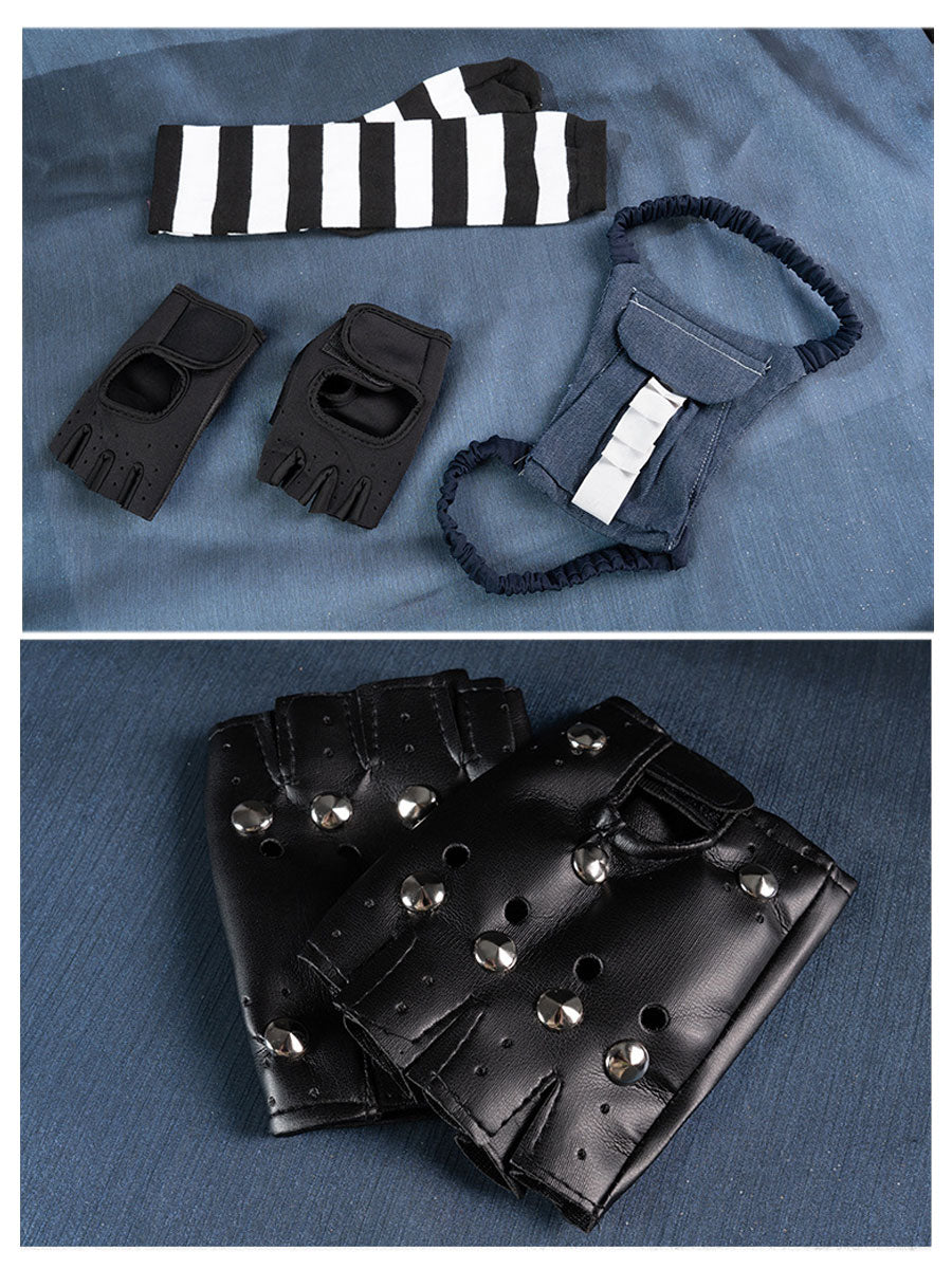 Package Including: 1*Top+1* Bottom+2* Gloves+1* Hat+1* Belt+Accessories
