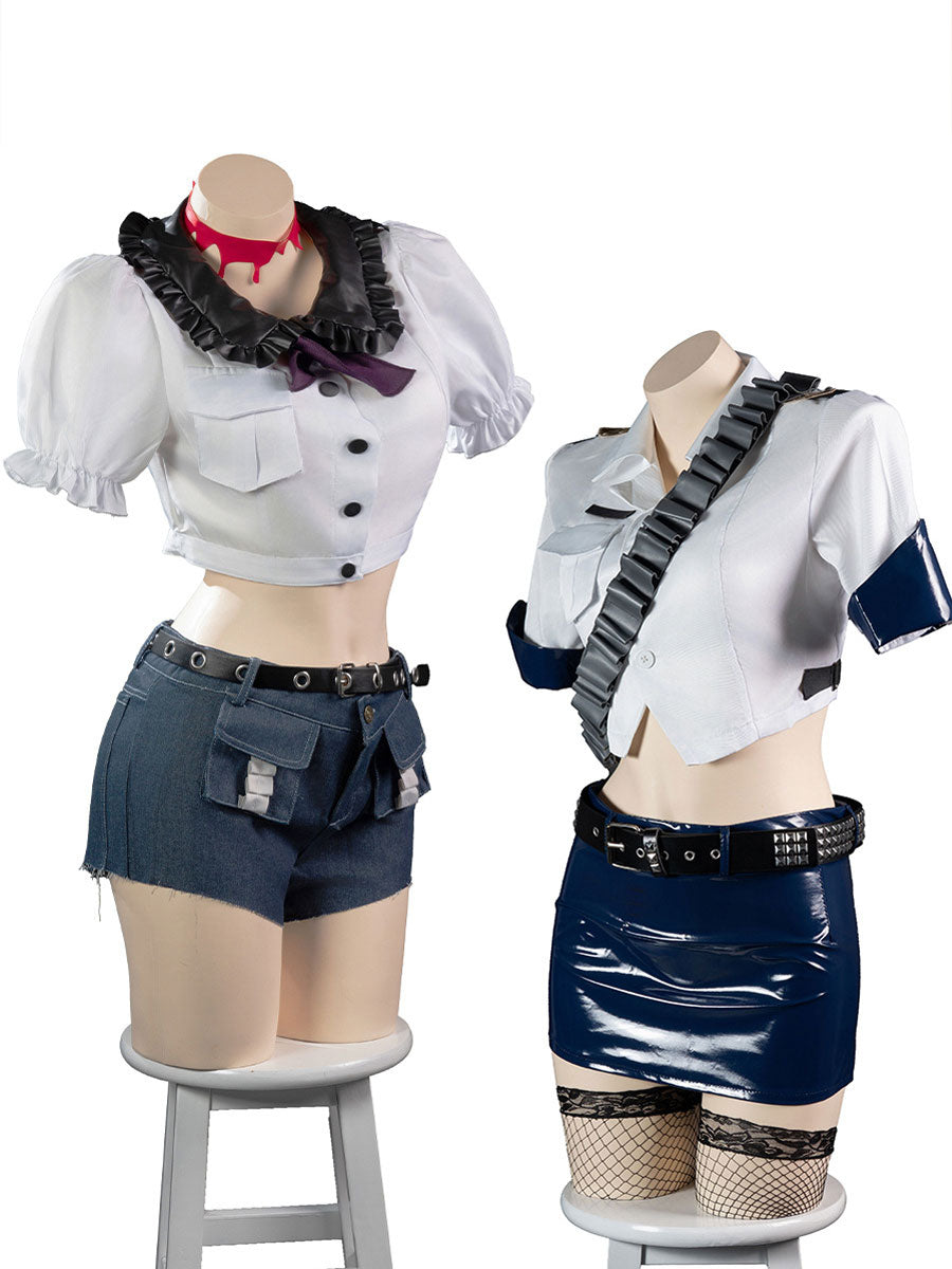 Design: Angel and Goth Angel Cosplay Outfit inspired by japanese anime cosplay costume, featuring a white puff-sleeve crop top, a high-waist shorts, or latex mini skirt, and a matching hat, restores the game character. Stand out from the crowd and embody your favorite character with this stunning cosplay costume.