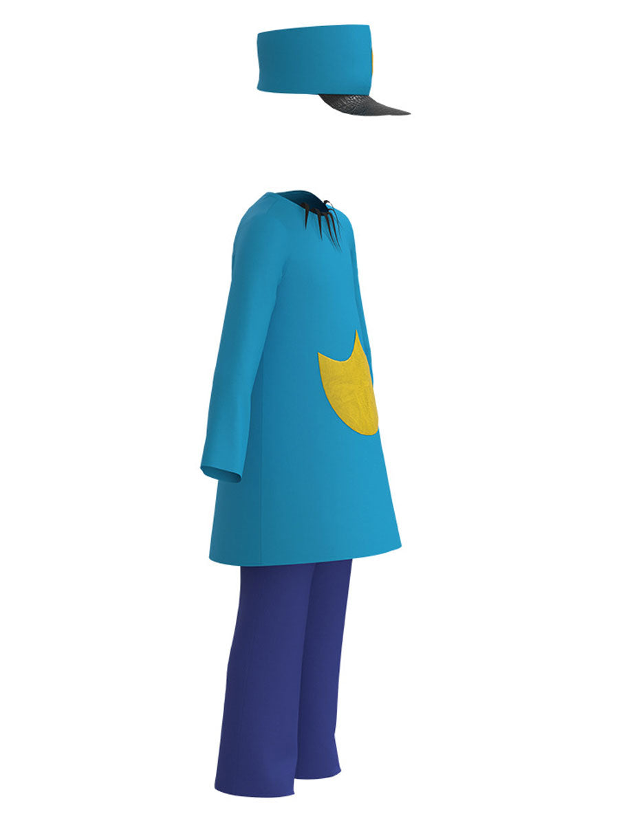 Design: Animated Dog Police Officer Costume featuring a blue shirt with a large, golden badge printed on the front, paired with dark blue pants, a matching dog-themed hat, restores the game character.