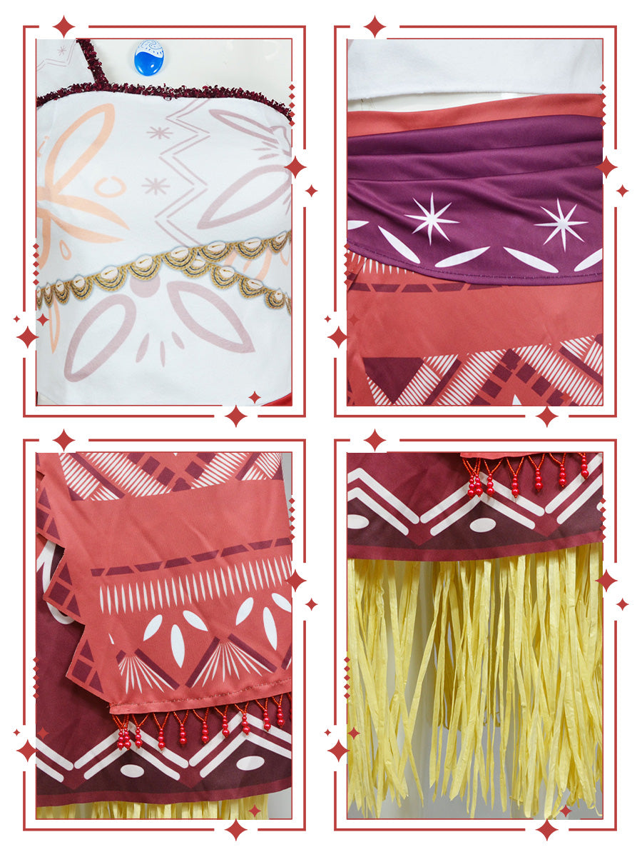 Design: This Island-style Costume inspired by american animated musical fantasy film, features a short top with folk art pattern, and a matching high waisted skirt has two layers that include fringe details. Stand out from the crowd and embody your favorite character with this stunning cosplay costume.