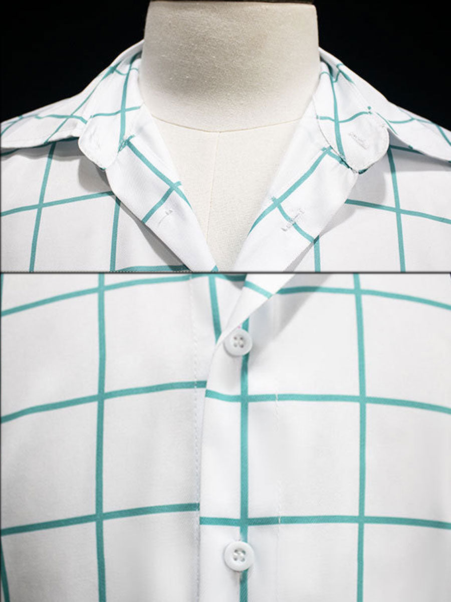 Design: Anime Super Idol Costume featuring a timeless white and green check print, a classic collar, full button-down front, and relaxed silhouette for effortless style, restores the roles character.