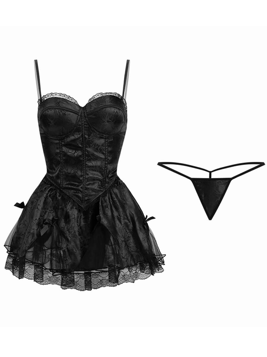 Package Including: 1x Corset+1x Mesh Skirt+1x Panty (Headpiece, gloves and stockings not included.)