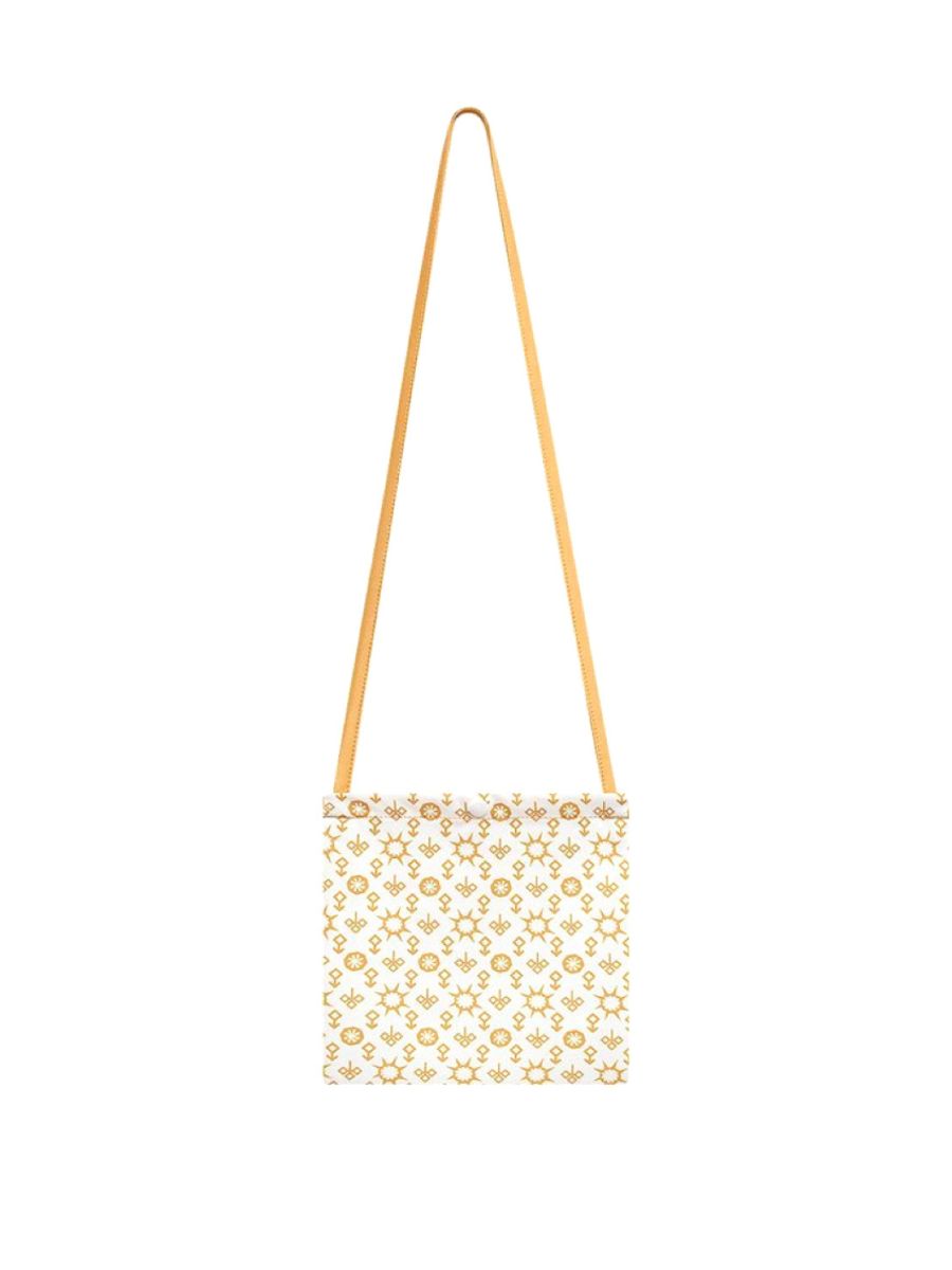 Design: American vampire musical film costume featuring a white dress with vibrant red bodice, long white sleeves with printed gold detailing, and a white flared skirt adorned with golden rune-like patterns, restores the roles character.
