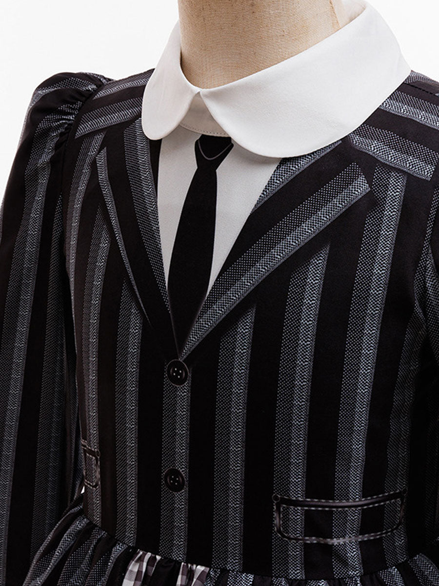 Occasion: Striped School Cosplay Outfit is perfect for Halloween costume party, Wednesday Addams Costume party, Christmas party, Cosplay party, Club night party, daily wear, School Days and Vacation, business or office, a sexy long sleeve flare dress for dating or meeting and so on.