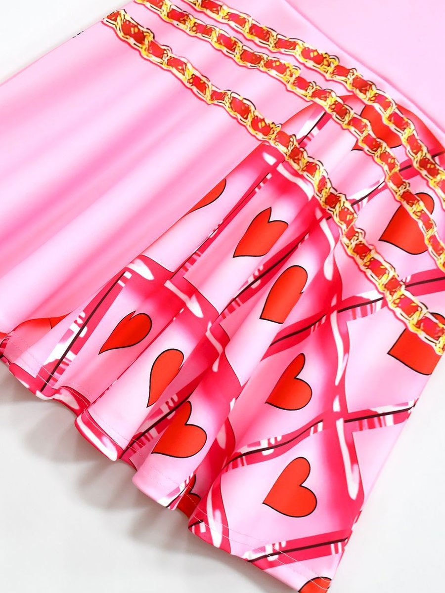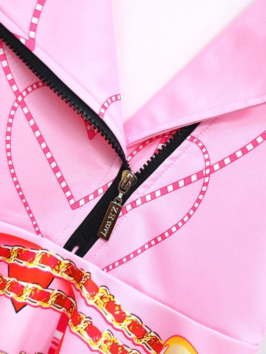 Design: American musical comedy film costume featuring a pink dress, long sleeves, an allover 3D printed design, front zipper up closure, and a matching pants, restores the princess character.