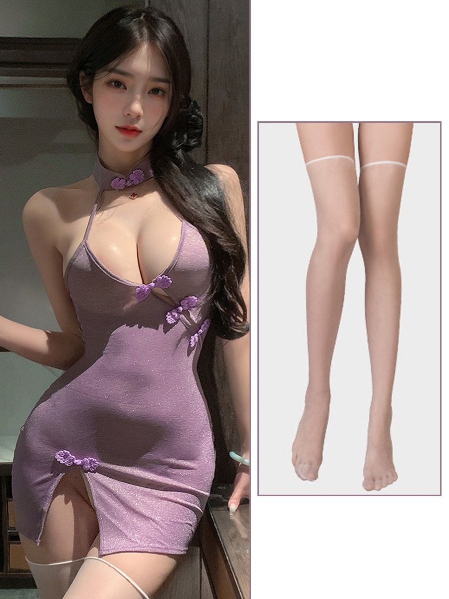 Package Including: 1 x Cheongsam+1 x Panty+1 pair of Stocking