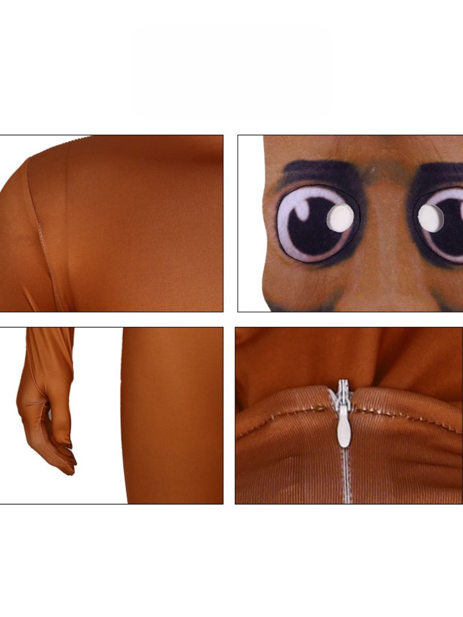 Design: This Cartoon wooden figure costume featuring a full-length jumpsuit, back zipper up closure, Made from stretchy, breathable fabric, it comes with a matching mask for a head-to-toe transformation.