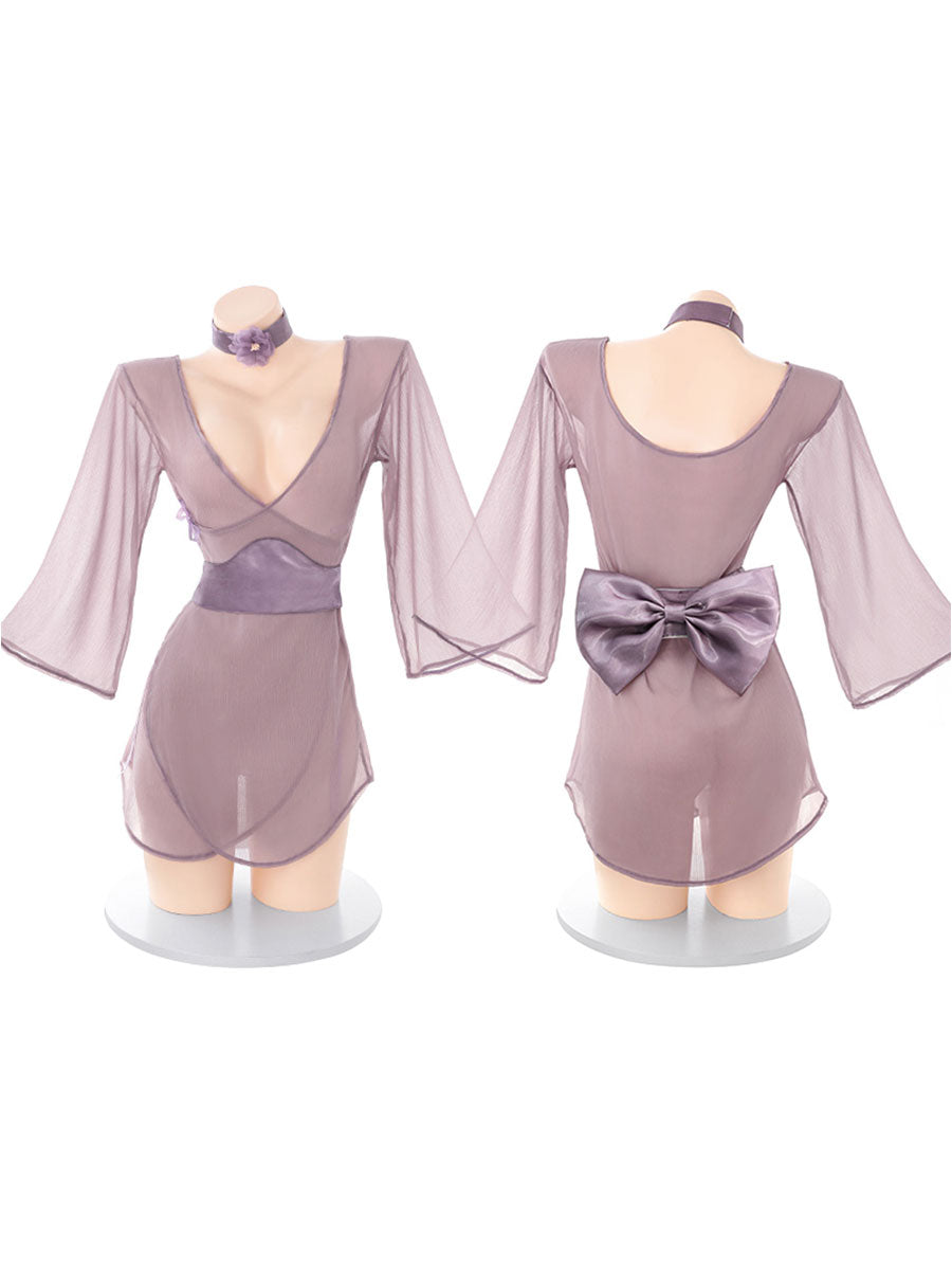 Package Including: 1* Kimono Dress+ 1* Panty+ 1* Belt+ 1* Choker