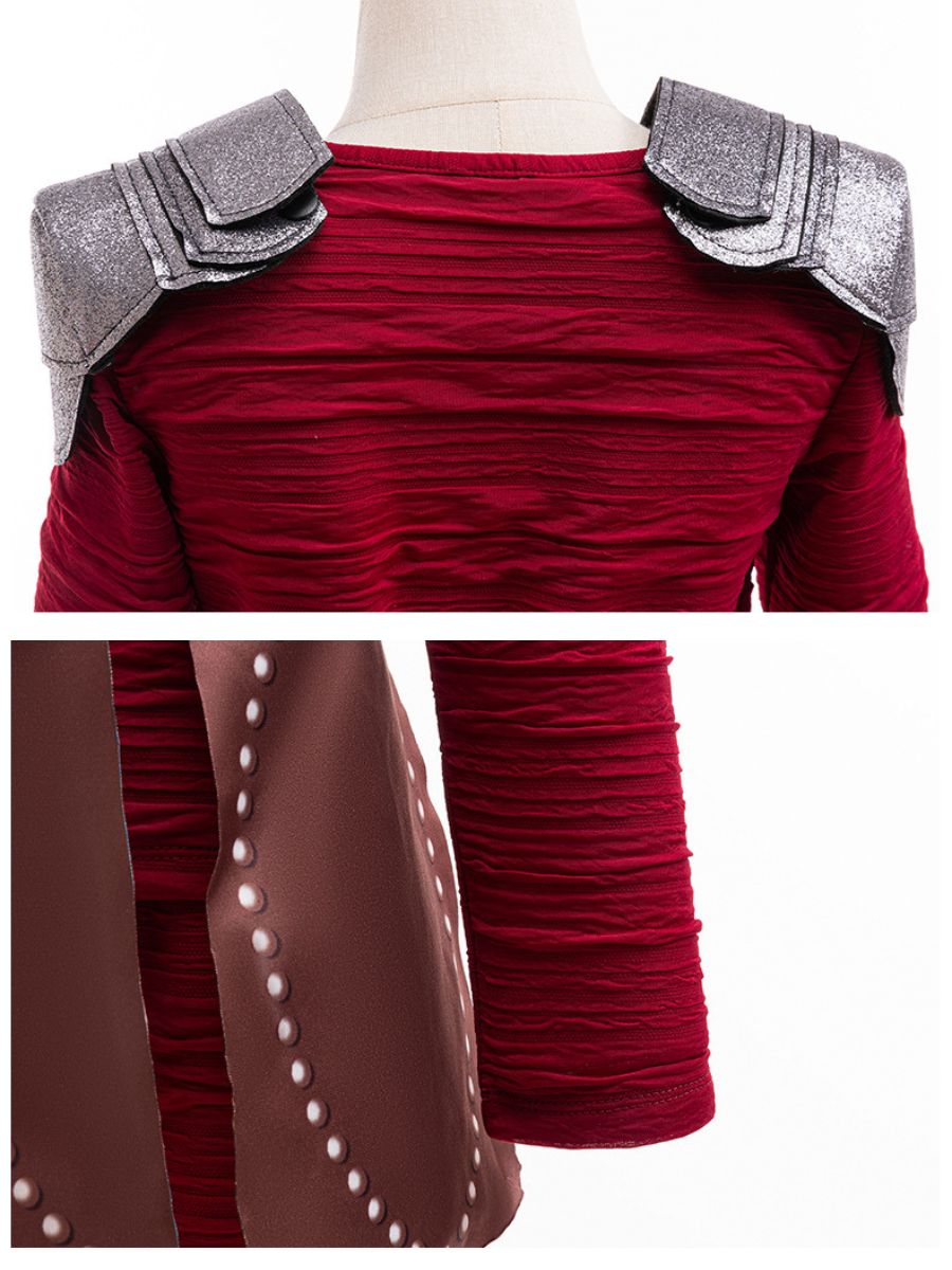 Design: Girls Viking Costume featuring a textured crinkle fabric, this long-sleeve top and pants set includes shoulder armor and a high waisted skirt with draping accents for a bold, battle-ready look.