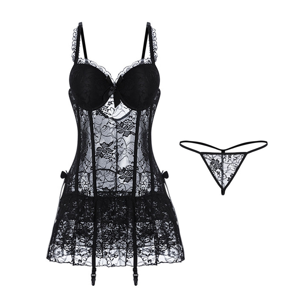 Lace Babydoll Lingerie Set Black Gothic Corset Dress Lolita Cosplay Bustier Bodycon Dress