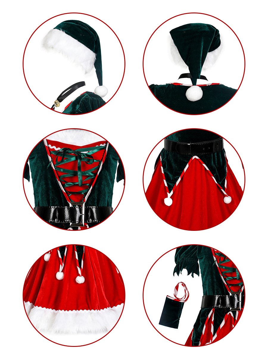 Occasion: Santas Elf Costume is perfect for any holiday party, role-playing, nightclub costumes, photographic costumes, fancy dresses, pajamas, home clothes.
