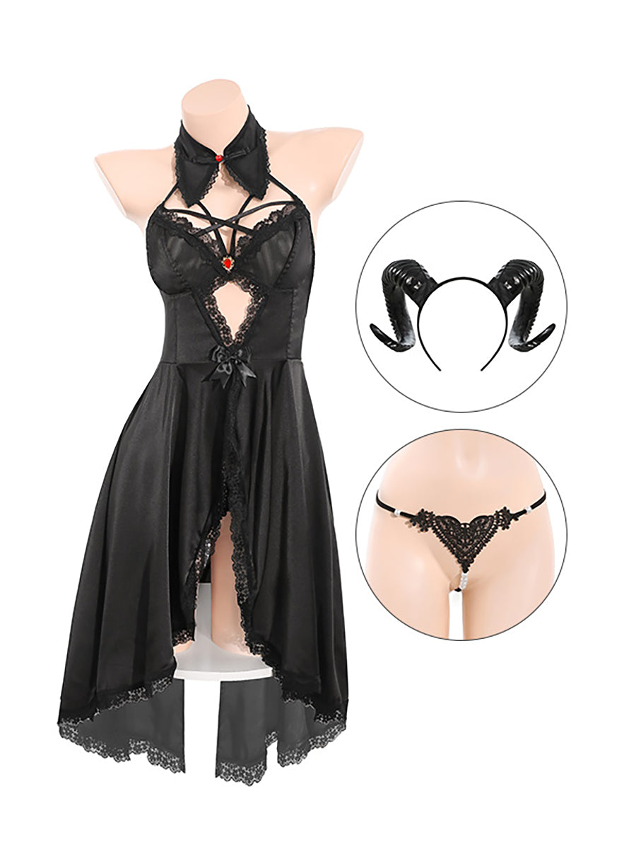 Package Including: 1* Dress+1* Devil Horn Headband+1* Panty+1 pair of Stocking
