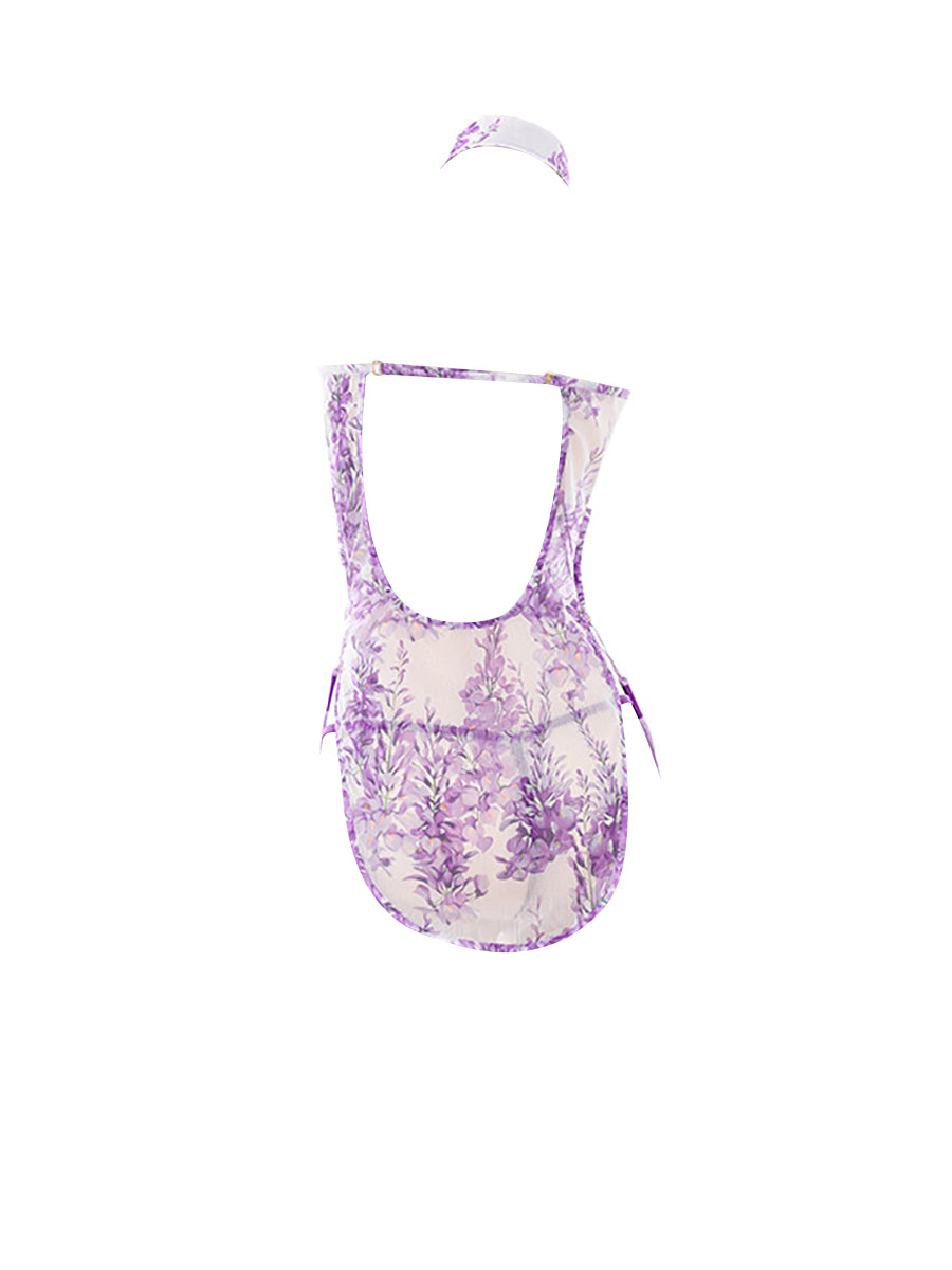 Design: Sexy Vintage Cheongsam Lingerie is designed with chiffon mini dress, halter neckline, traditional chinese buckle closure, an allover floral printed, and high slit hemline. No restraints on chest with narrow bralette design, and the mini dress are definitely fit on your body curves outline. It makes you more attractive, charming, fashion and chic.