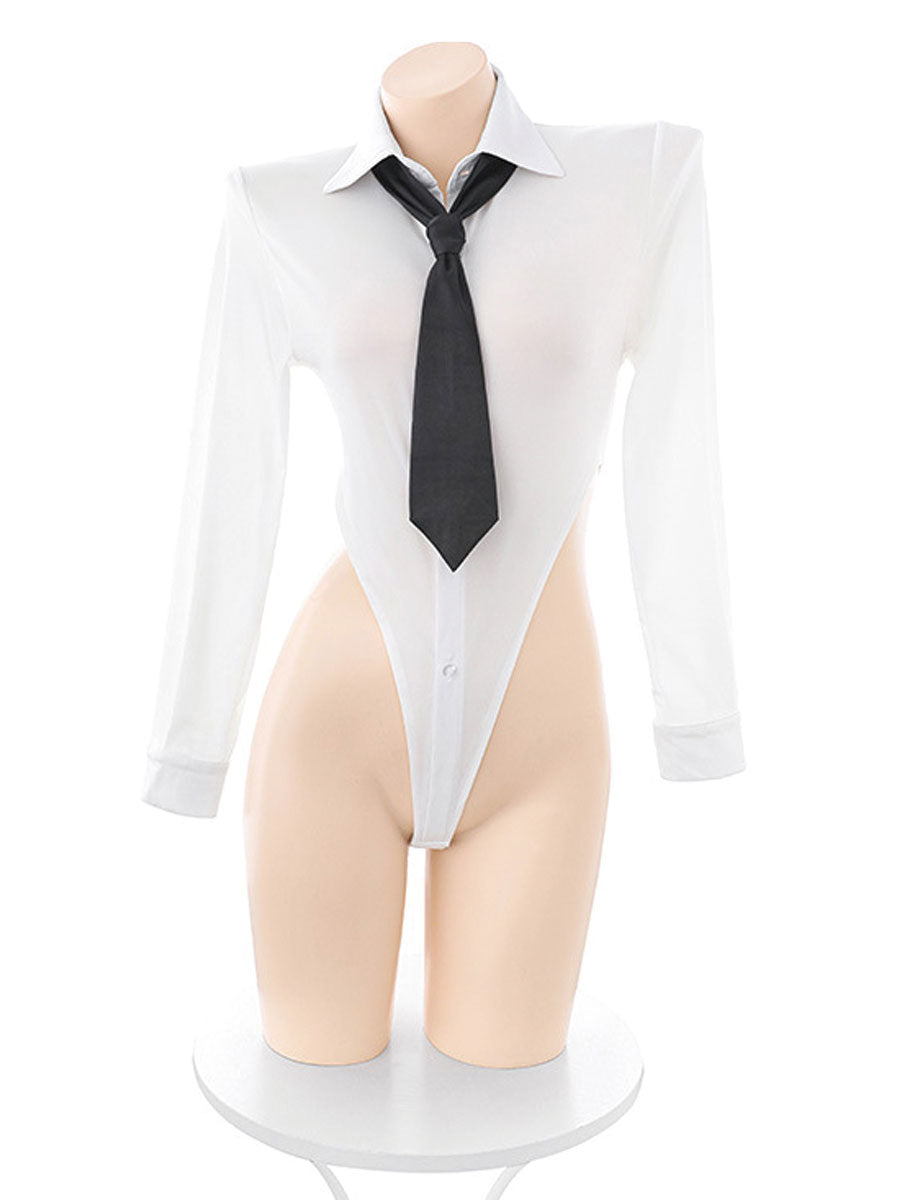 Package Including: 1x Bodysuit+1x Skirt+1x Necktie+1x Pantyhose