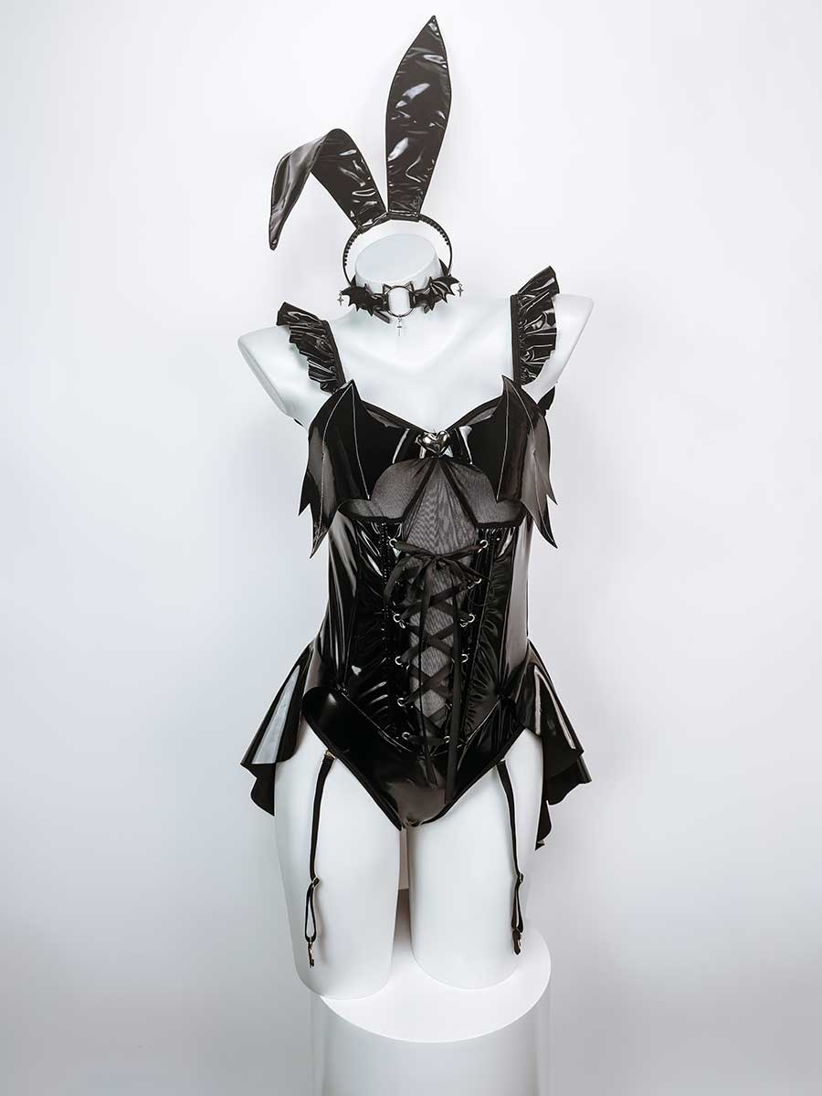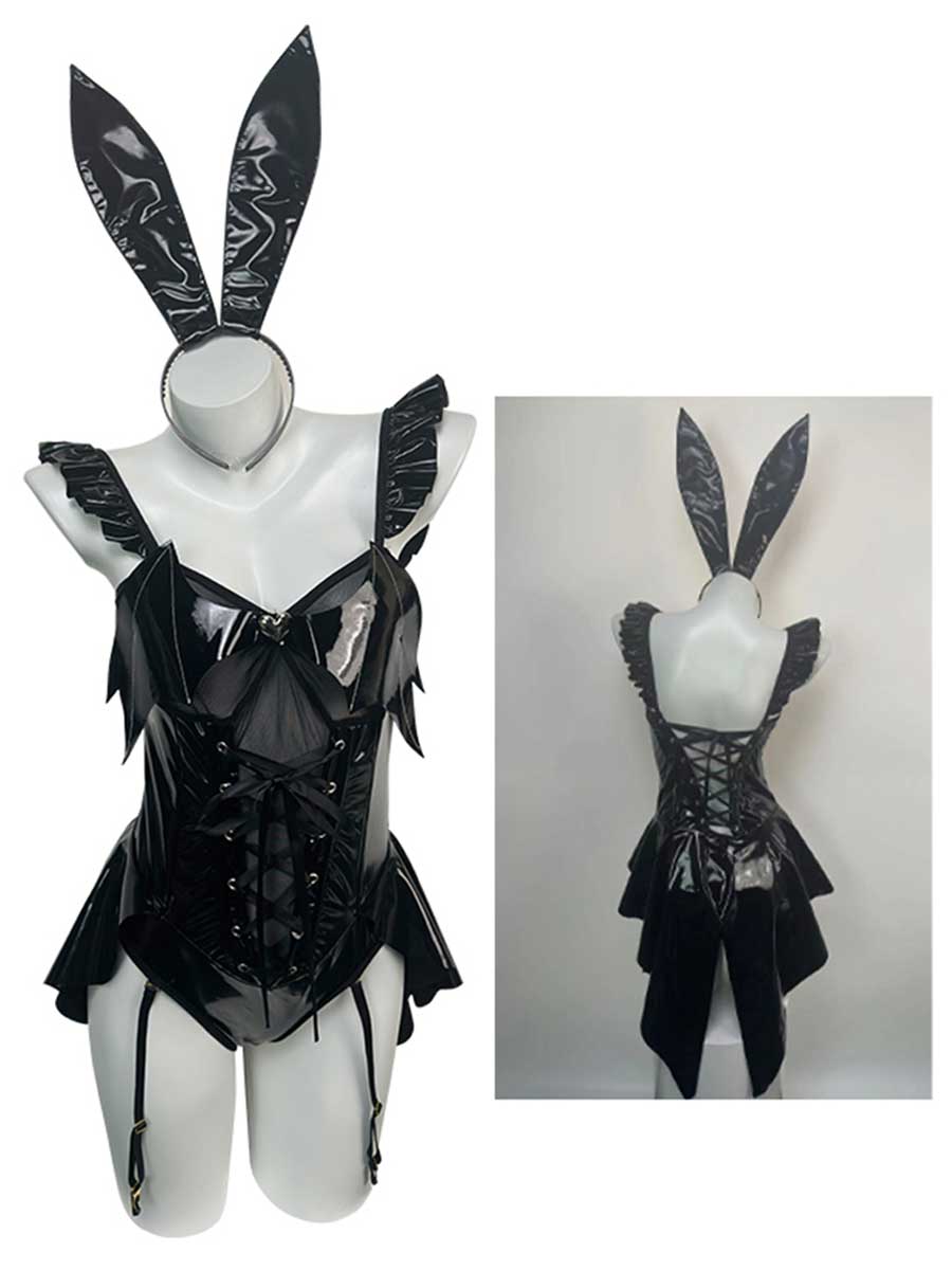 Design: Succubus Little Devil Cosplay Costume features a black pu leather bodysuit with attached tailcoat, spaghetti straps with ruffled trim, mesh panels design, bat wings decorate, a fitted bodice with back ribbon lace-up closure, and an attached adjustable garter straps, this is a cute and sexy costume designed to make you look more charming.