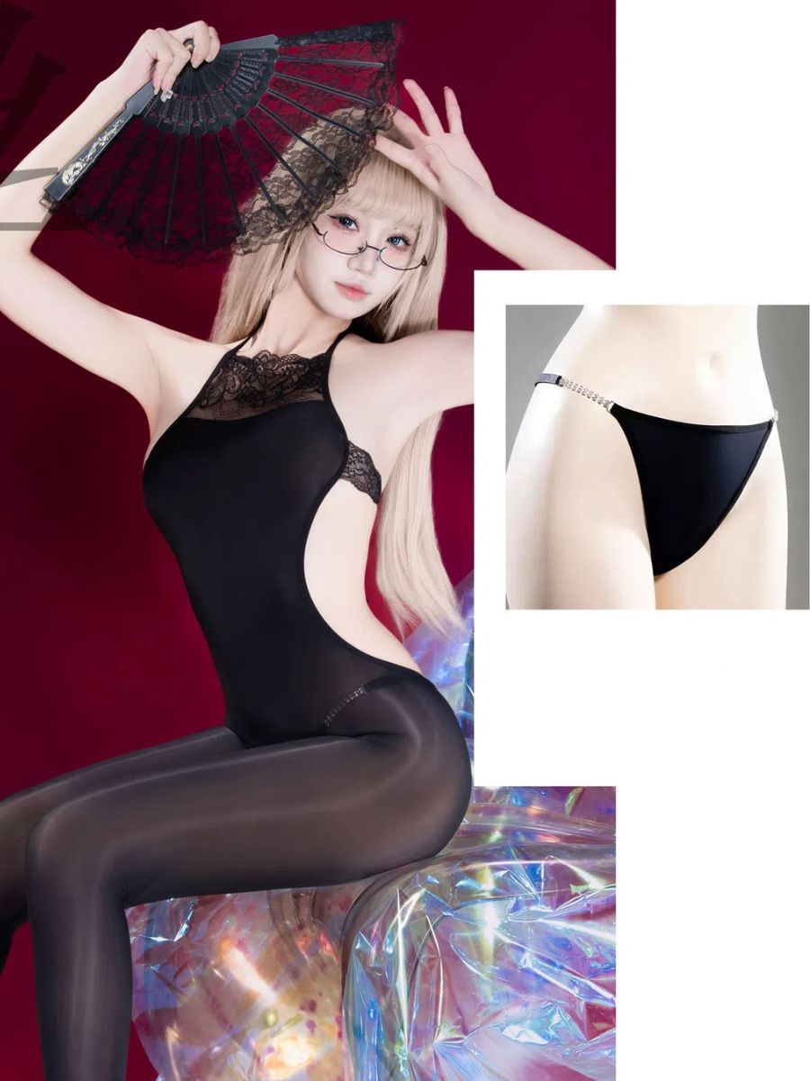 Design: This sexy lace bodystocking featuring a seductive red lace neckline, curve-enhancing cut-out sides, open crotch design, and fully transparent tights that elongate your legs.