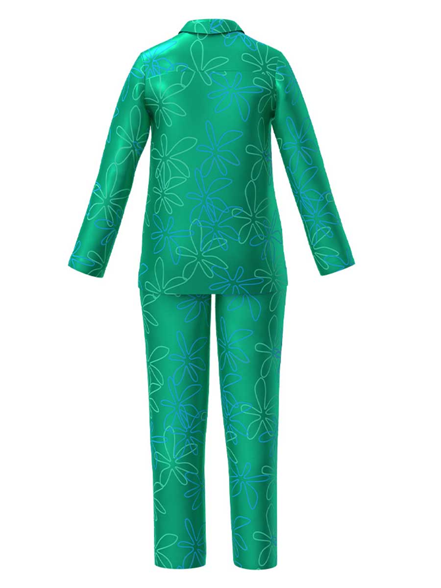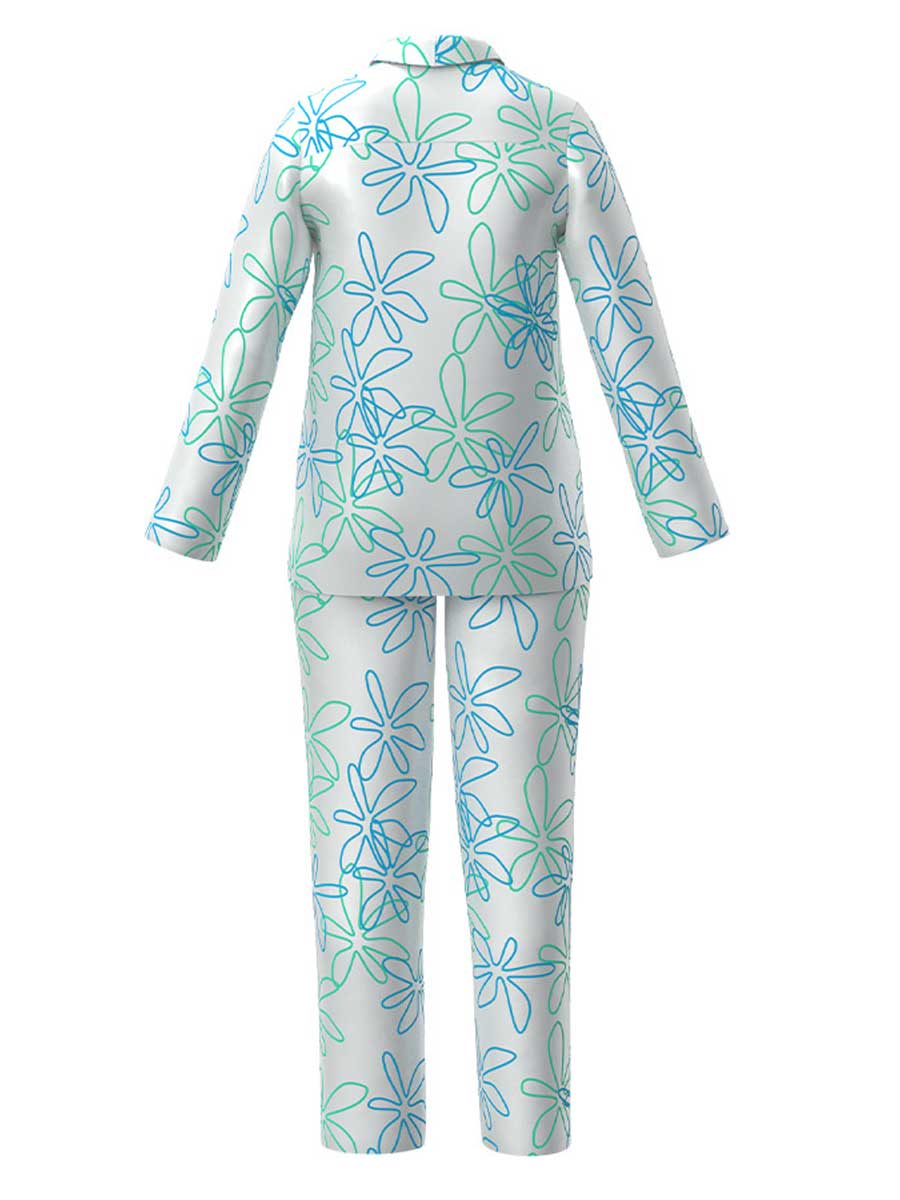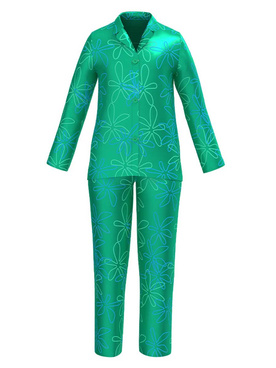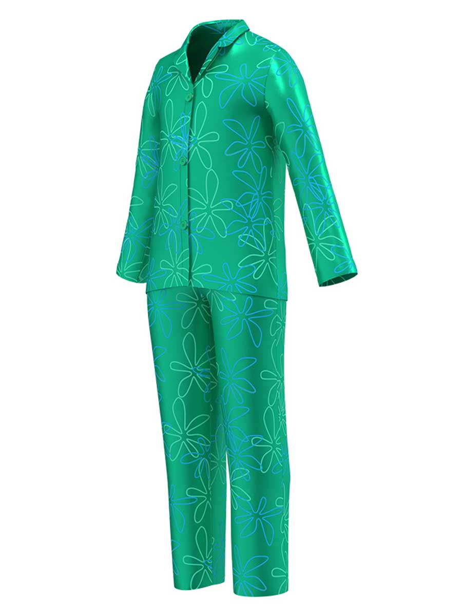 Design: This satin cozy pajama set featuring a loose shirt with long sleeves, front button closures, an allover floral print, matching pants with comfortable full coverage.