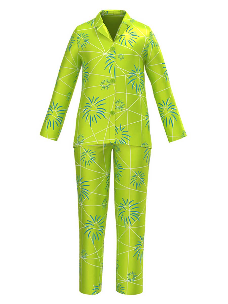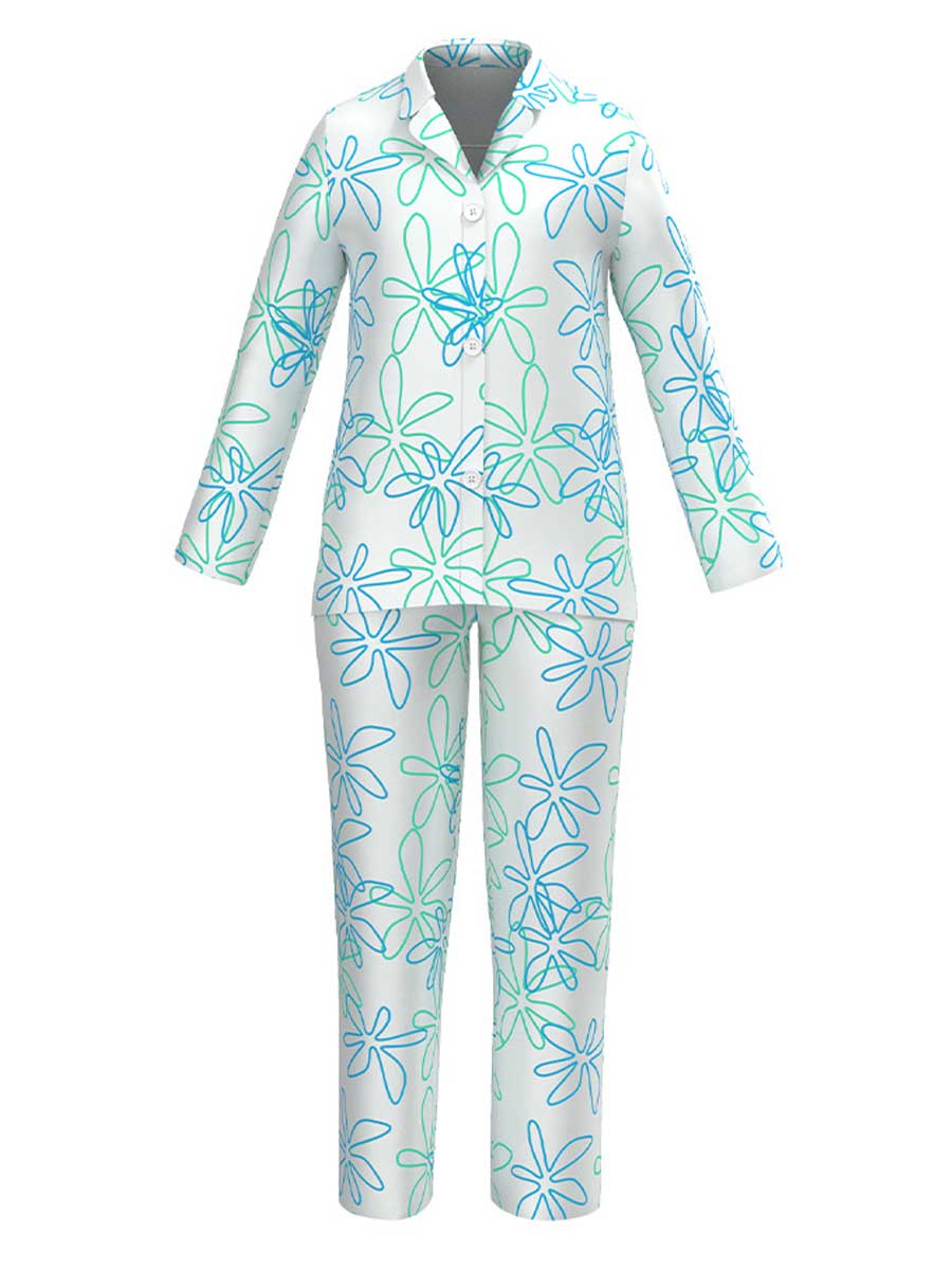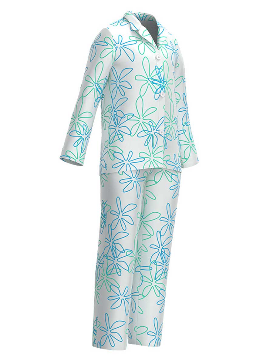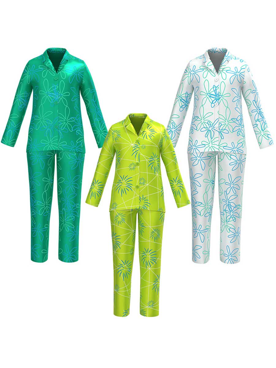 Design: This satin cozy pajama set featuring a loose shirt with long sleeves, front button closures, an allover floral print, matching pants with comfortable full coverage.