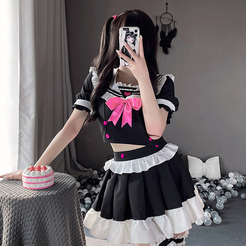 Anime Maid Cosplay Costume Classic Japanese Lolita Lace Top with Skirt Uniform Outfit