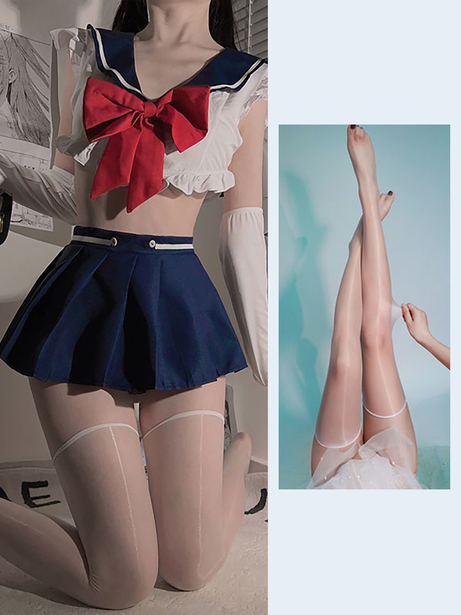 Package Including: 1* Top+1* Skirt+2* Gloves+1* Bow+1* Panty+1 pair of Stocking