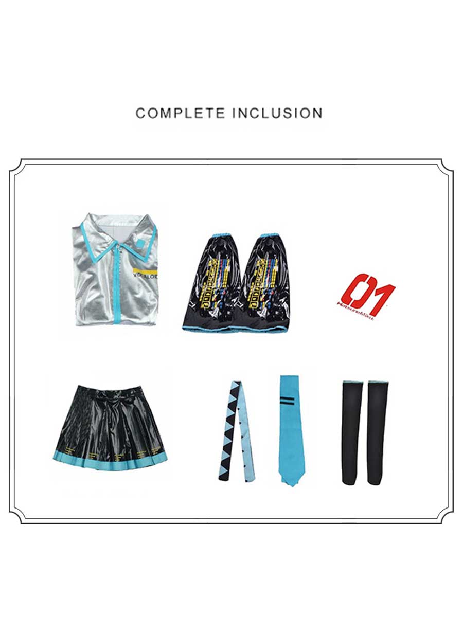 Package Including: 1* Top+1* Skirt+2* Sleeves+1* Belt+1* Necktie+1* Tattoo Stickers+1 pair of Stocking