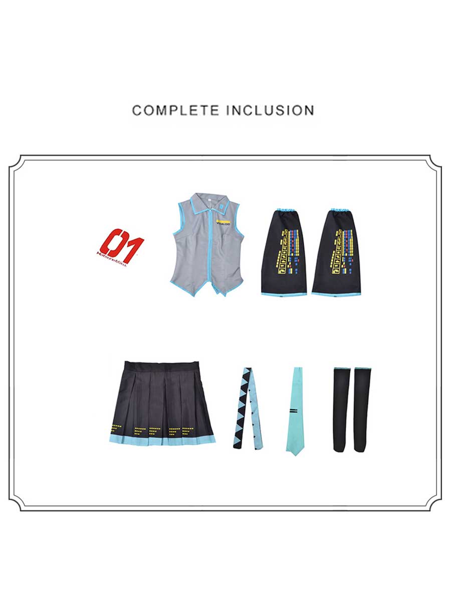 Design: Japanese Anime Cosplay Costume inspired by anthropomorphic idol character, featuring sleeveless top, front zipper up closure, long flared sleeves, blue tie, and a-line pleated mini skirt with belt, restores the game character. Stand out from the crowd and embody your favorite character with this stunning cosplay costume.