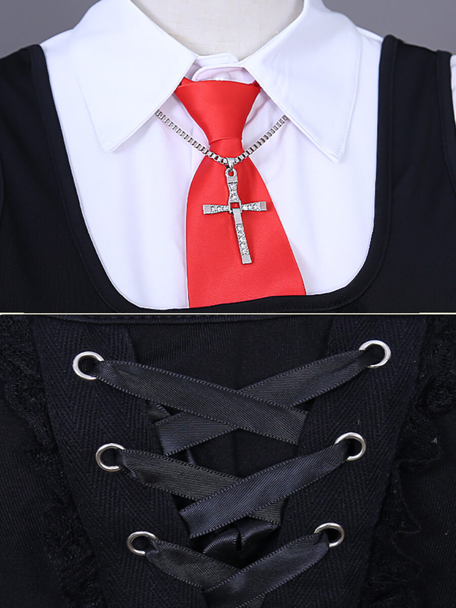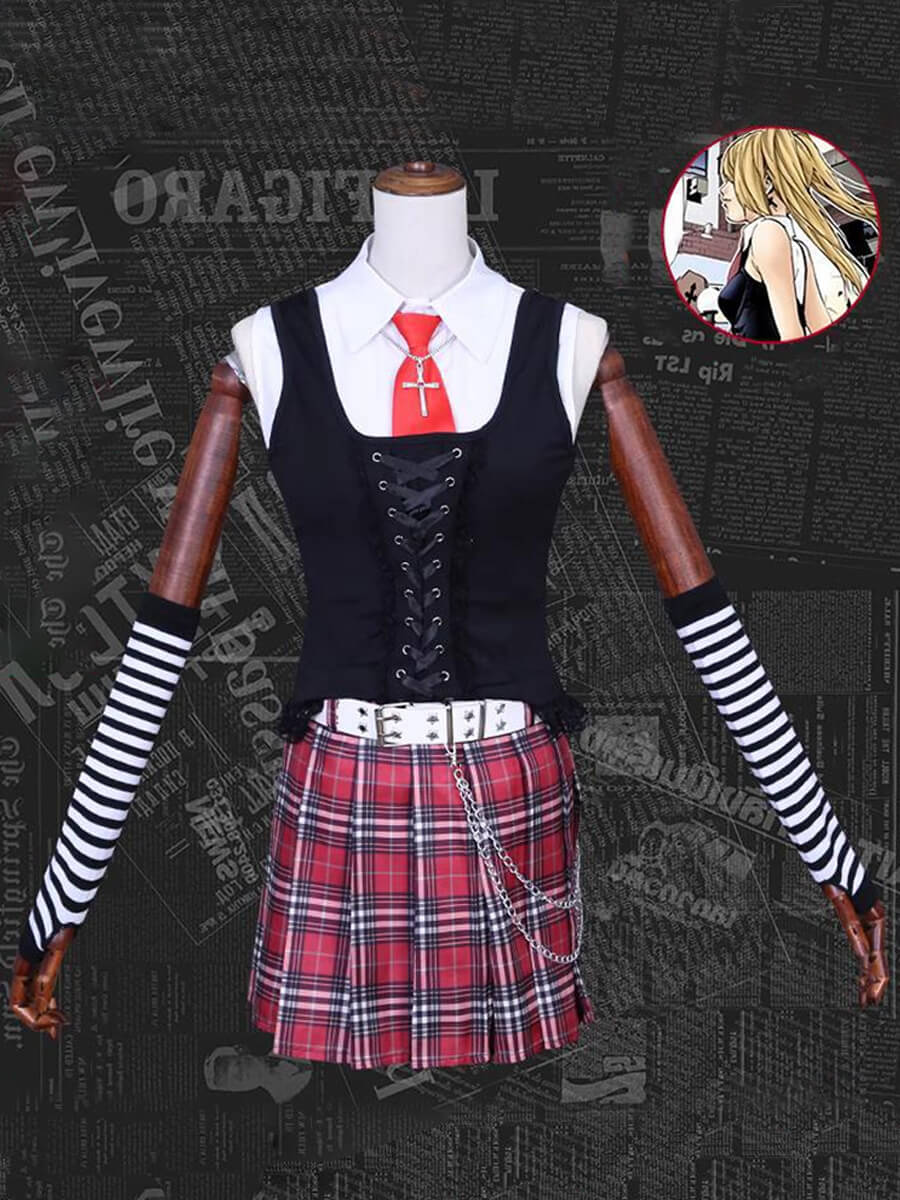 1* Misa White Shirt+1* Misa Black Top+1* Misa Skirt+2* Sleeves+1* Belt+1* Waist Chain+1* Necklace+1* Necktie+1 pair of Stocking